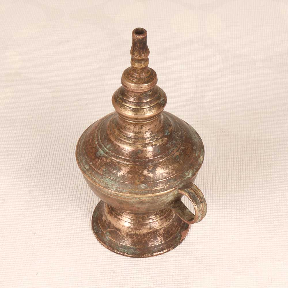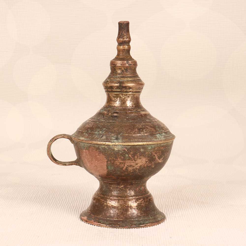 Experience the warm glow of yesteryear with this vintage brass oil lamp, handcrafted in Gujarat, India using traditional techniques passed down through generations. Revel in the nostalgic charm of simpler times when the warm glow of an oil lamp brought families together after sunset. The soft, natural lighting creates a cozy atmosphere perfect for relaxing at the end of the day. Place it on your dining table, coffee table or nightstand to infuse your home with old world charm. Ideal for those who appreciate artisanal craftsmanship and want to add a touch of history to their home decor. This handmade brass lamp makes a meaningful gift and family heirloom.