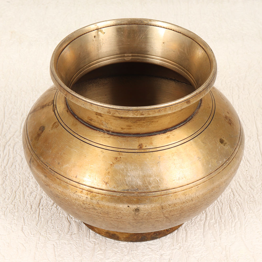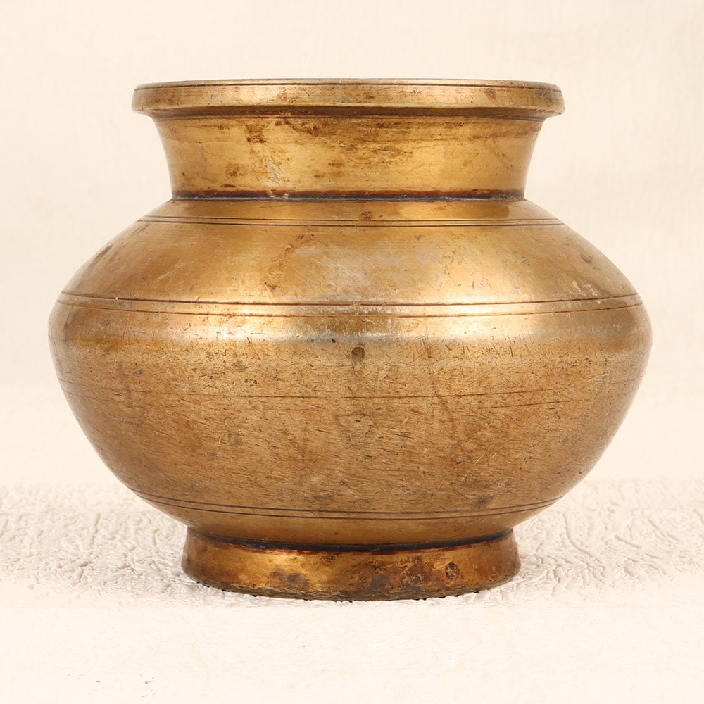 Add a touch of simple elegance to your home with this vintage brass holy water pot. Made in Gujarat, India, this beautiful pot features a classic plain design and brown finish that will complement both traditional and modern decor. This brass holy water pot is ideal for those looking to add a spiritual touch to their home. The pot allows you to keep holy water on hand for blessing yourself and family members as part of your daily ritual. Having the water readily available in a dedicated vessel helps maintain mindfulness and connection to your faith. The vintage styling gives this pot a timeless appeal. Whether placed on your home altar, prayer table, or mantle, this brass pot makes a meaningful addition to your home. Allow its simple elegance to enhance your space while providing comfort through spiritual tradition.