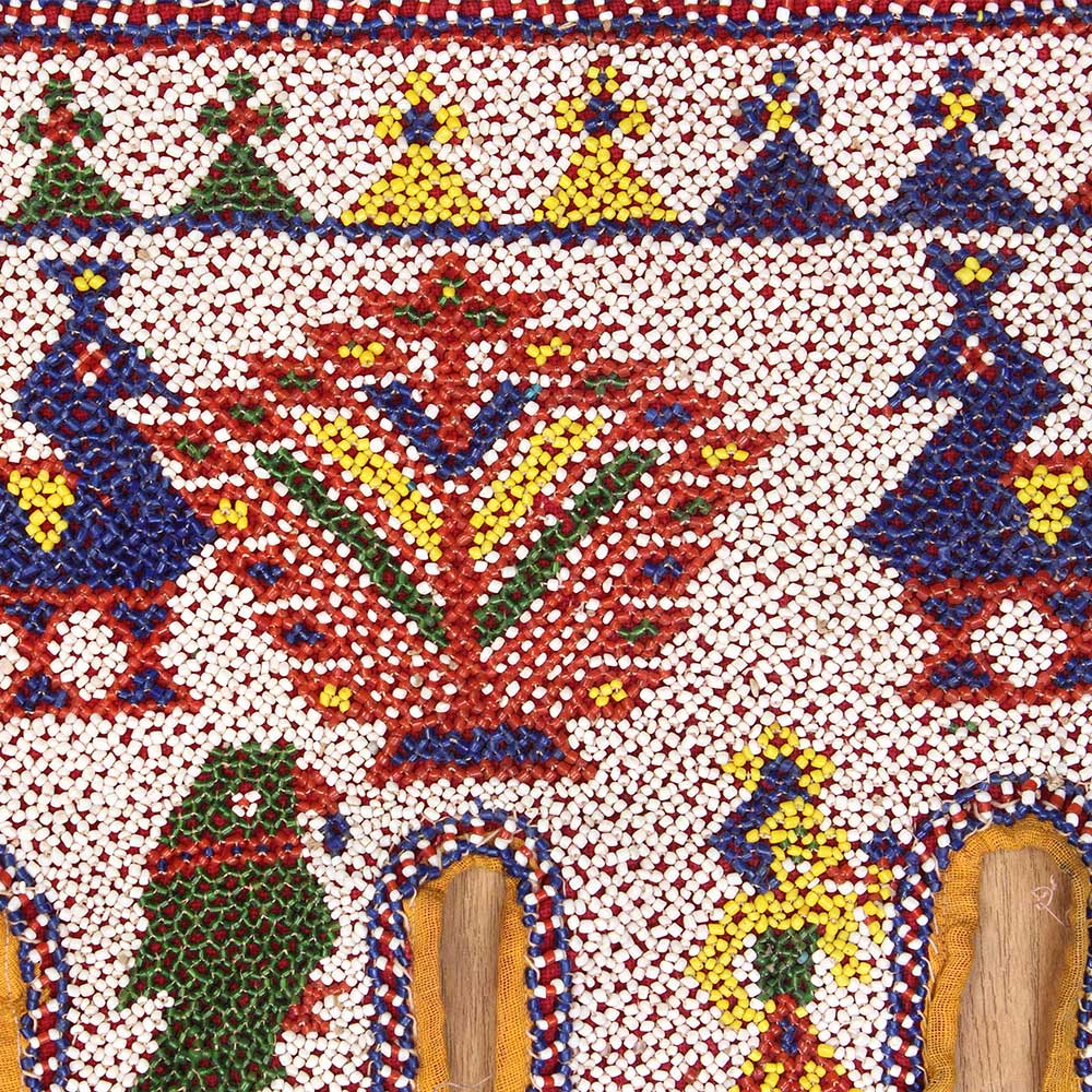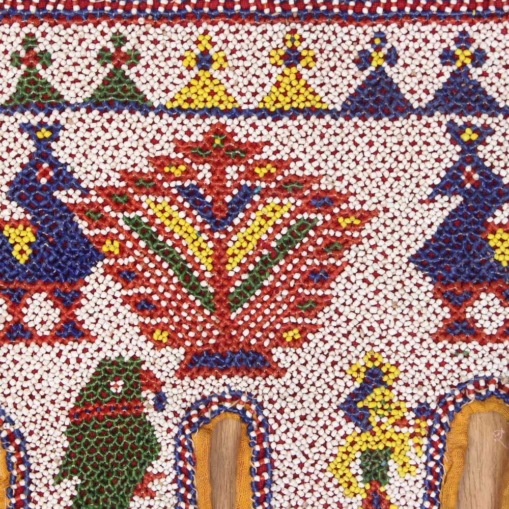 This classic handmade door hanging is from Gujarat and is entirely hand stitched with traditional motifs by women in Kutch. This was mainly a passion of Kutch women who believed in beautifying their environment and making wedding trousseau for their children. The women toil lovingly over their threads and needles, creating one-of-a-kind works of art such as this door hanging. The themes are based on ordinary life and are inspired by the environment.