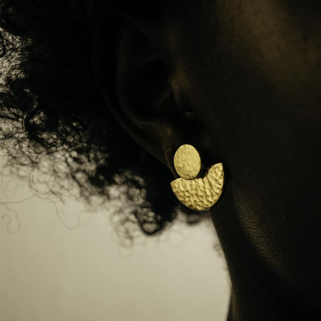 The Hammered Half Moon Stud Earrings capture the timeless beauty of celestial design through artisanal craftsmanship. Hand-forged from solid brass and finished with radiant 22K gold plating, each piece showcases a unique hammered texture that reflects light beautifully — like moonlight glimmering on still water. These earrings blend minimal elegance with bold texture, making them an essential piece for modern jewelry lovers and a bestseller for wholesale collections.