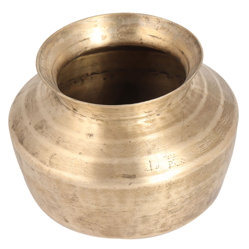This vintage Kalash or water pot is carved with a hammer from a brass alloy. It has a flat surface with rounded corners. It has a classic Kalash appearance. It was used in Hindu homes for rituals such as Havans, Kua Pujan (celebration for new born child). It is used in every auspicious function. If you use it as an indoor flower pot, it will be an eye-catcher for your visitors in your hotel, restaurant or shop. Excellent piece for vintage art lovers. Add this vintage collectible to your collection.