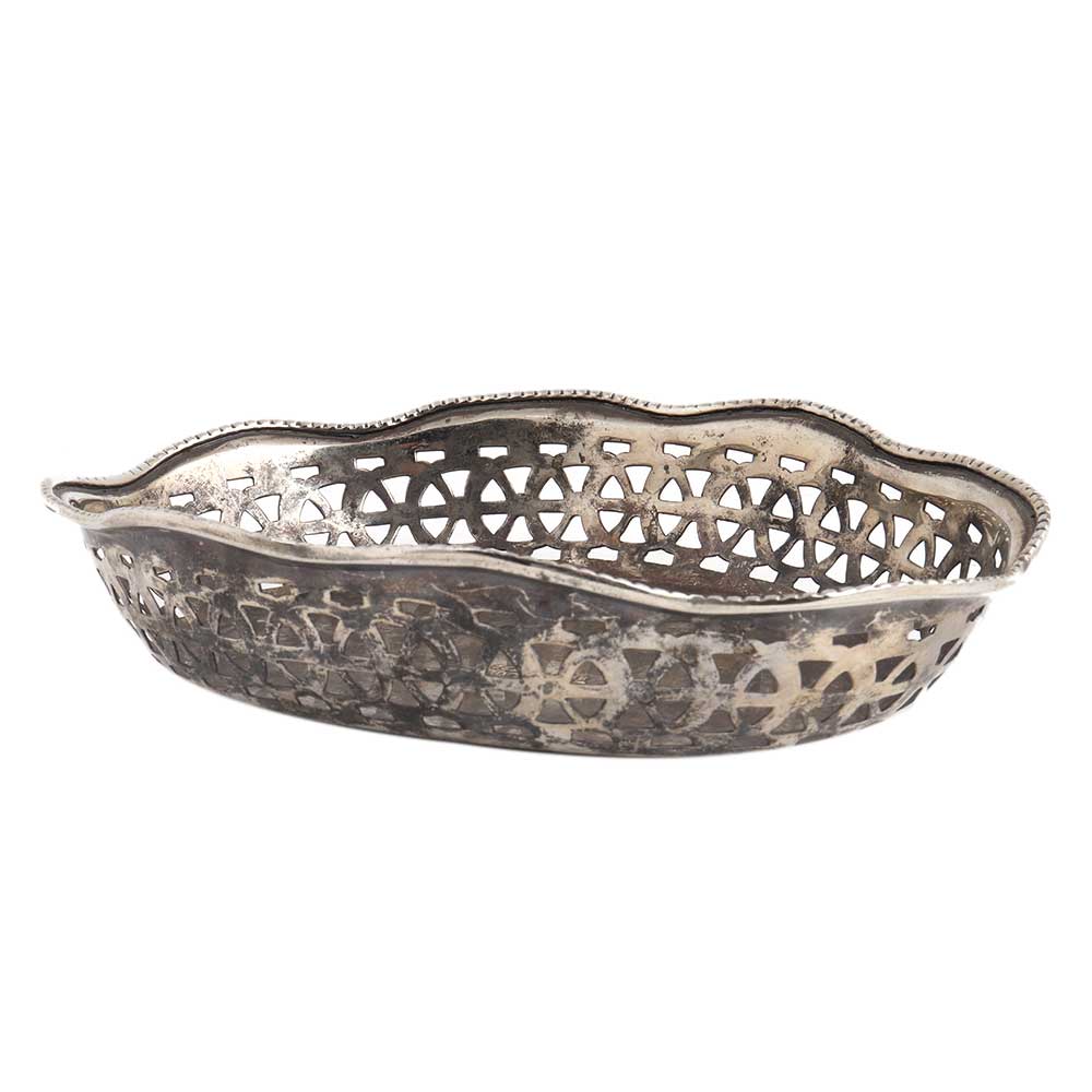 Hand Carved Blackened Silver Brass Oval Dish
