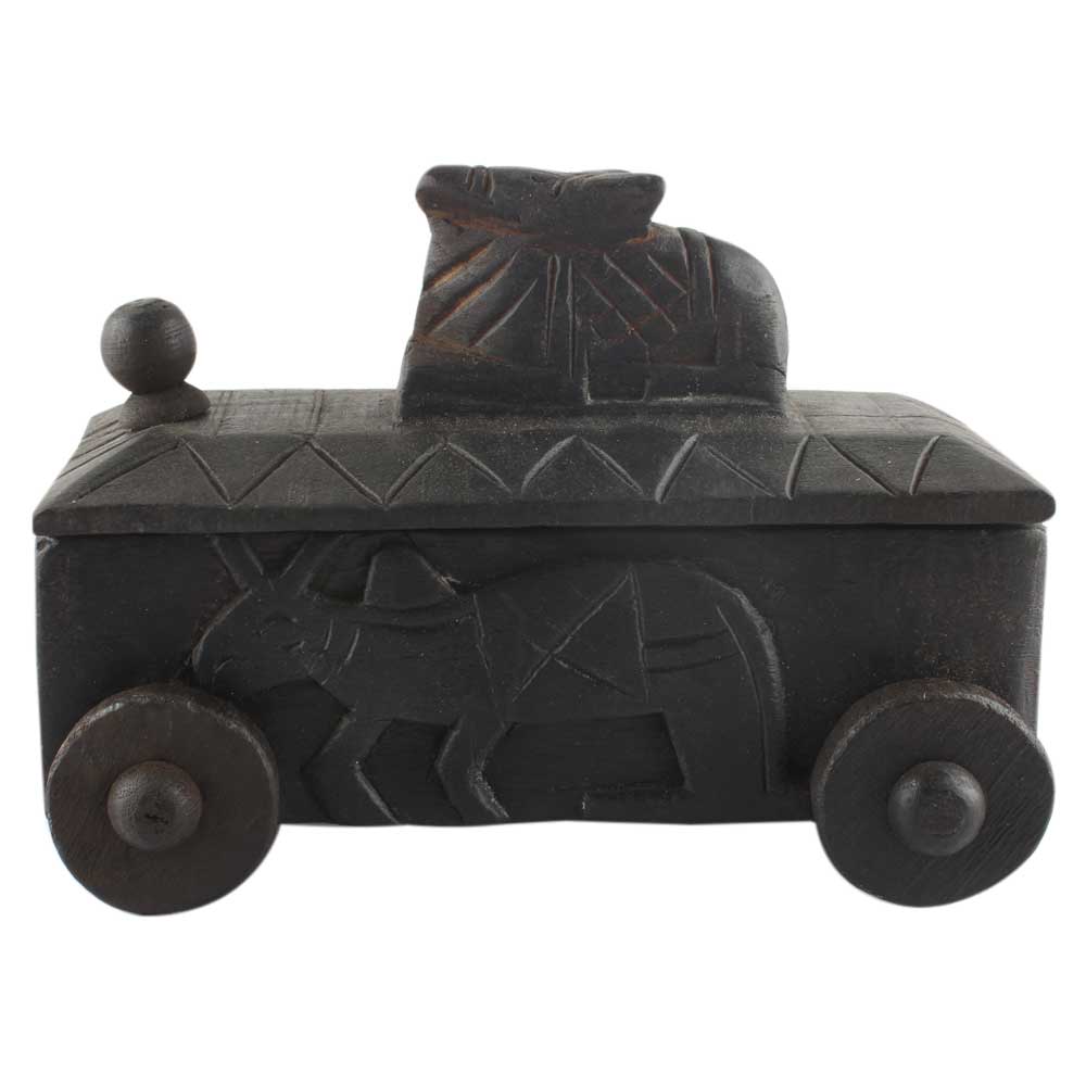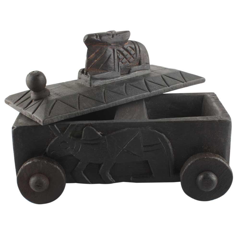 Hand Carved Nandi Wooden Box Spice Storage Box