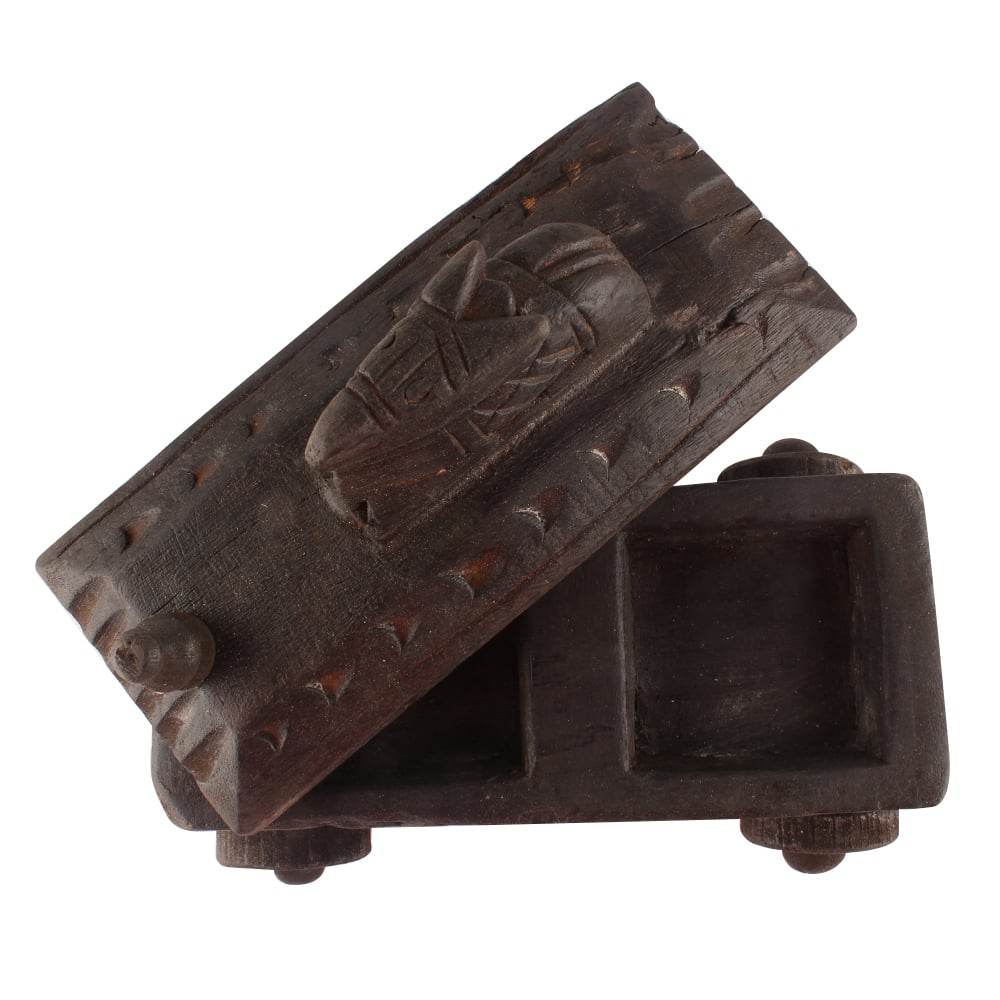 Hand Carved Spice Box Nandi Wooden Box . Ceramic Drawers in Wooden Frame. The Spice Boxes are designed with different patterns. These boxes are made using natural wood which does not harm the purity of spices.
