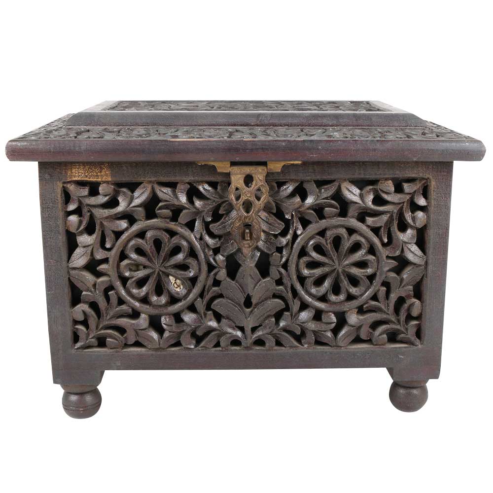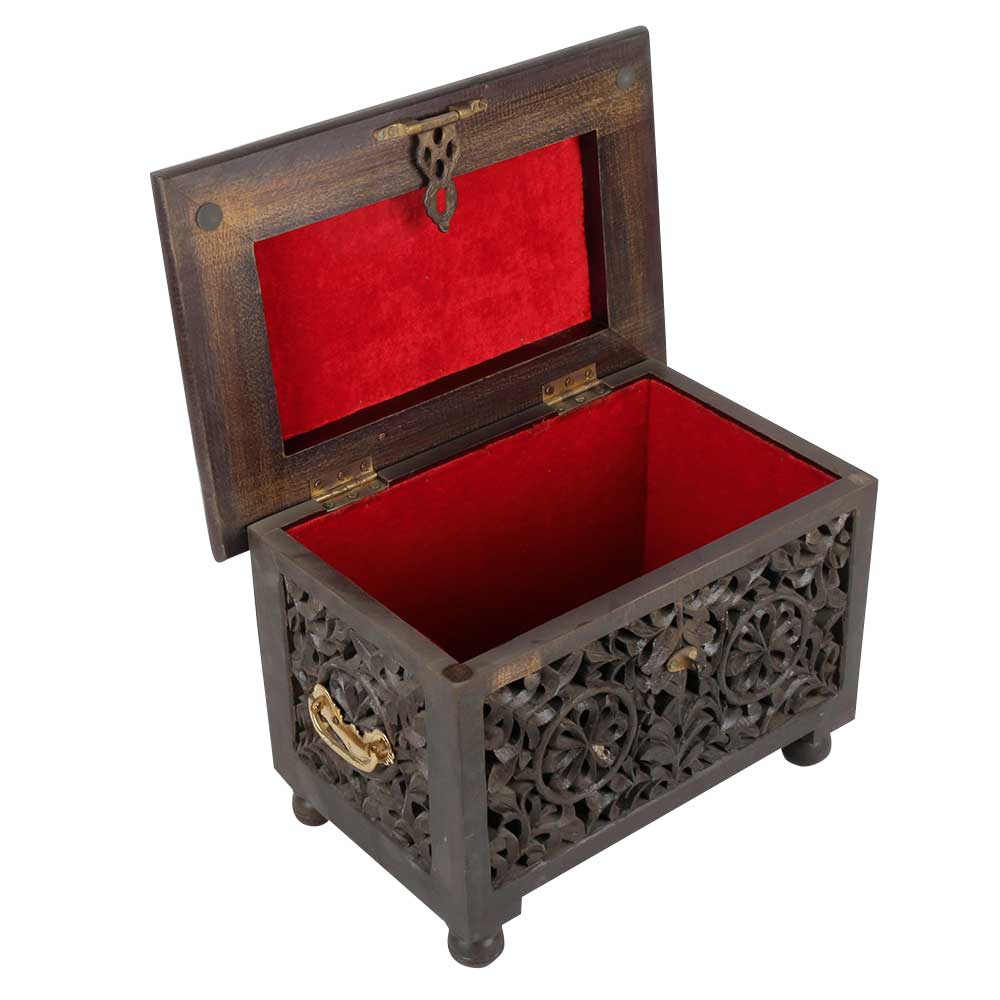 • Hand Carved Wooden Jewelry Box