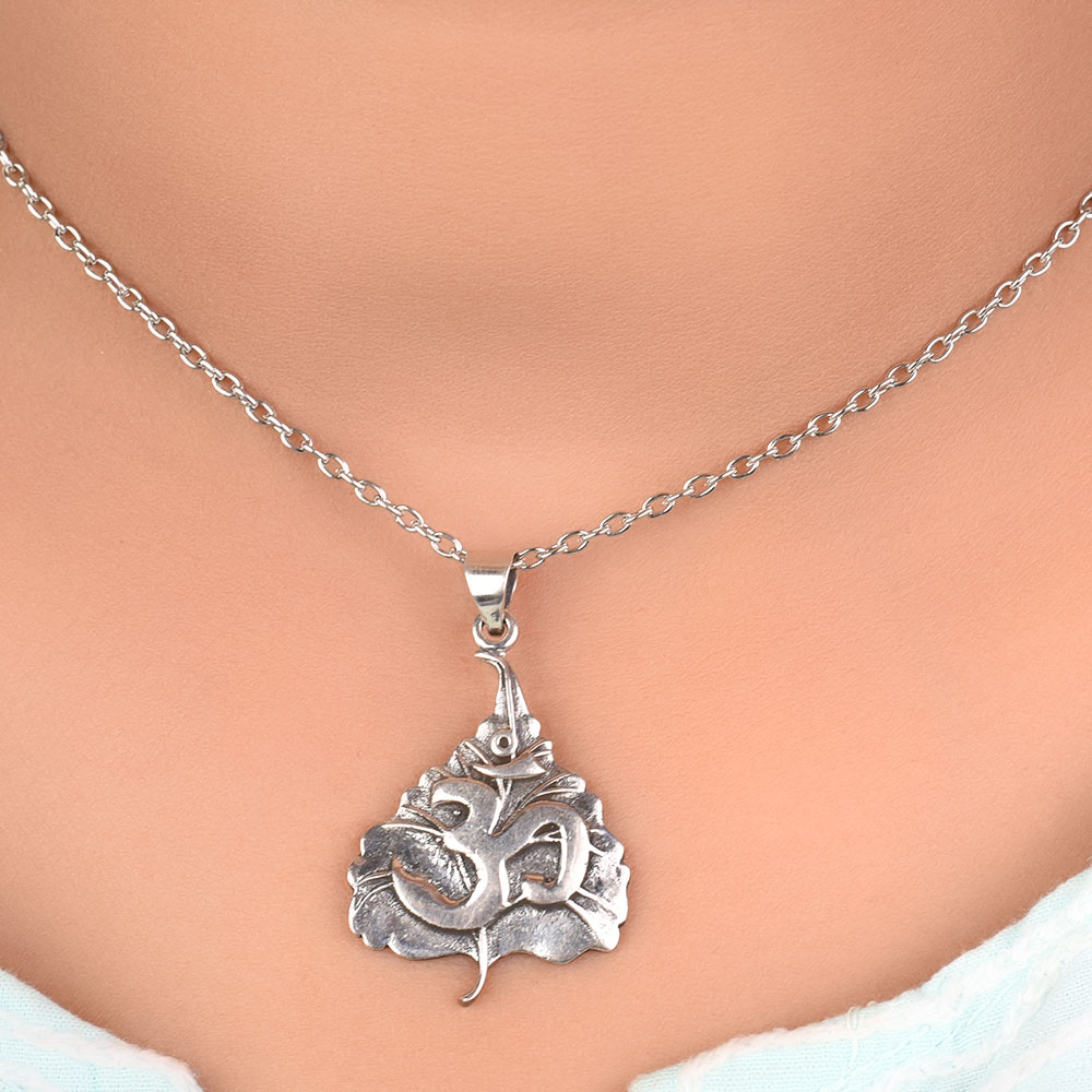 • Hand Crafted 92.5 Sterling Silver Leafy Aum Pendant