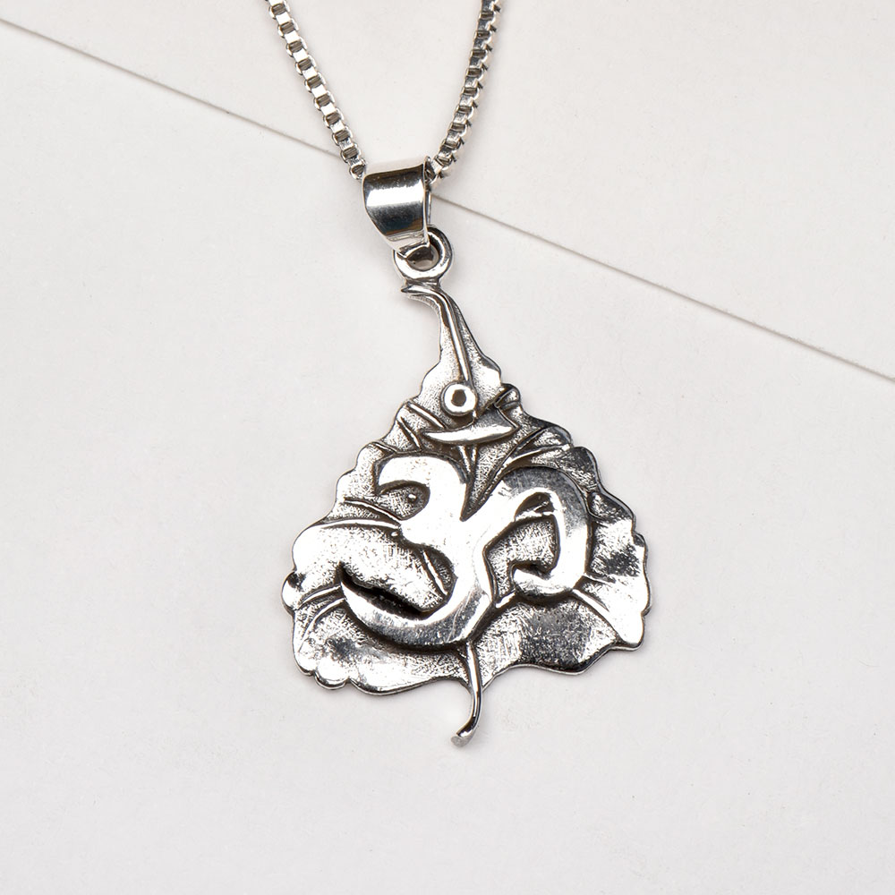 Hand Crafted 92.5 Sterling Silver Leafy Aum Pendant