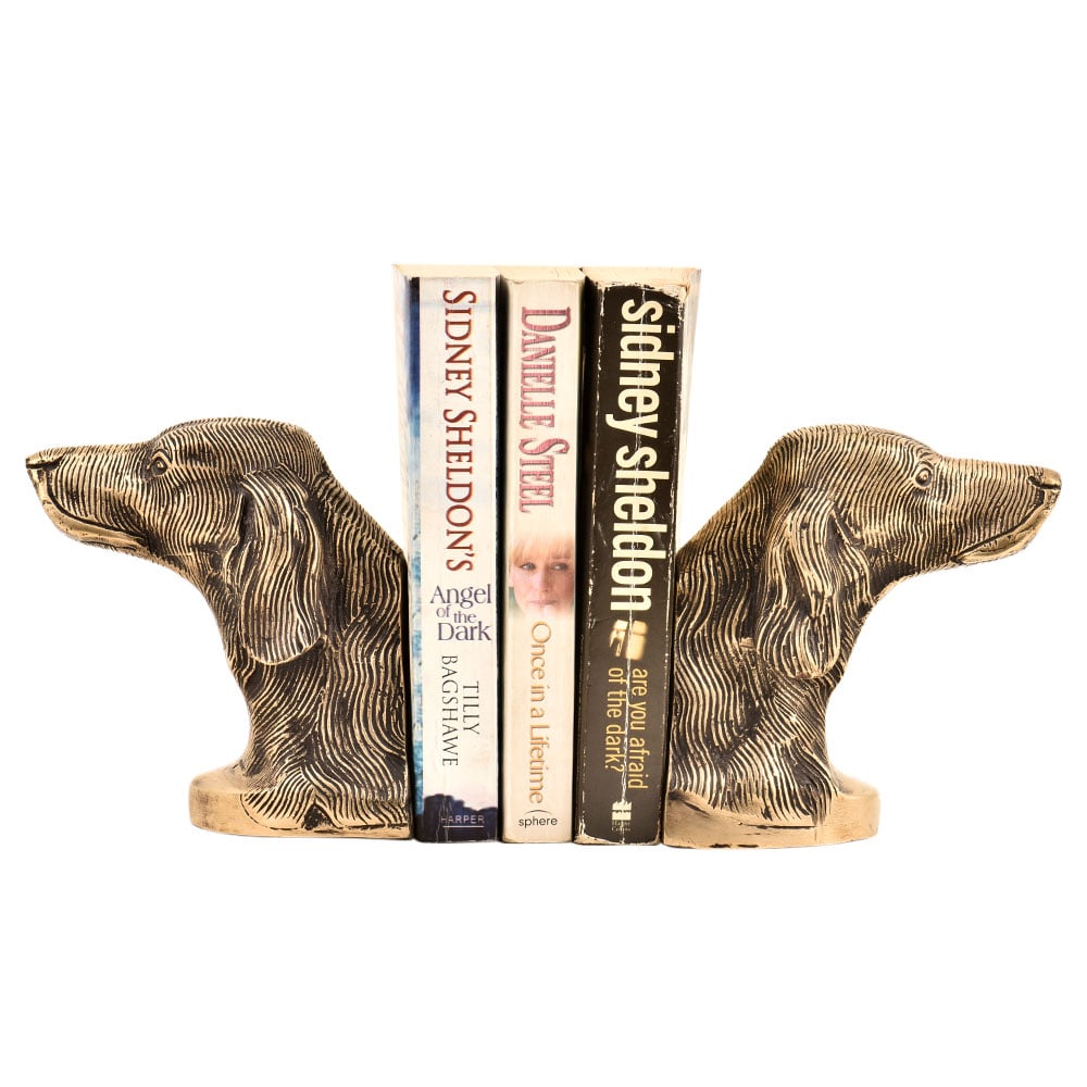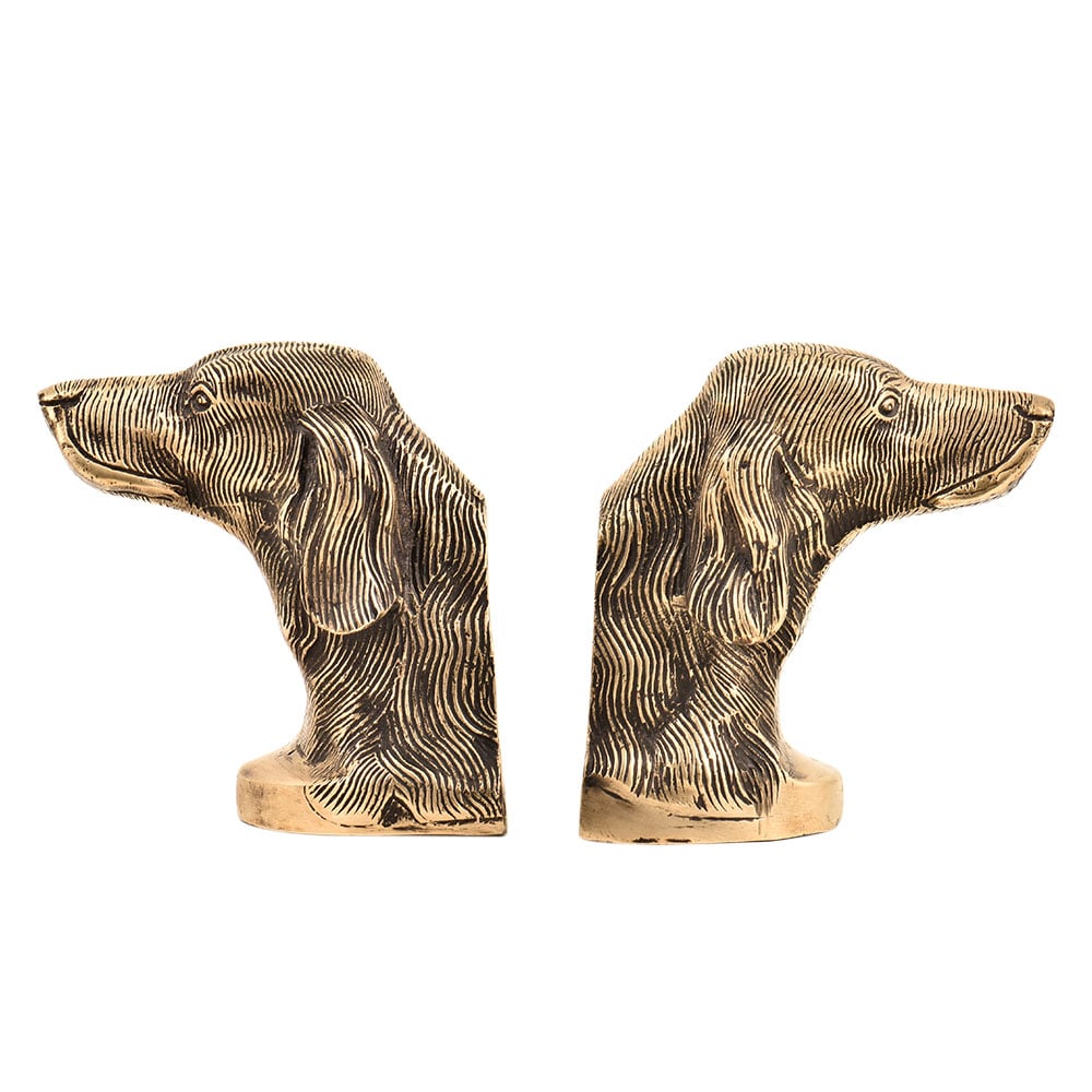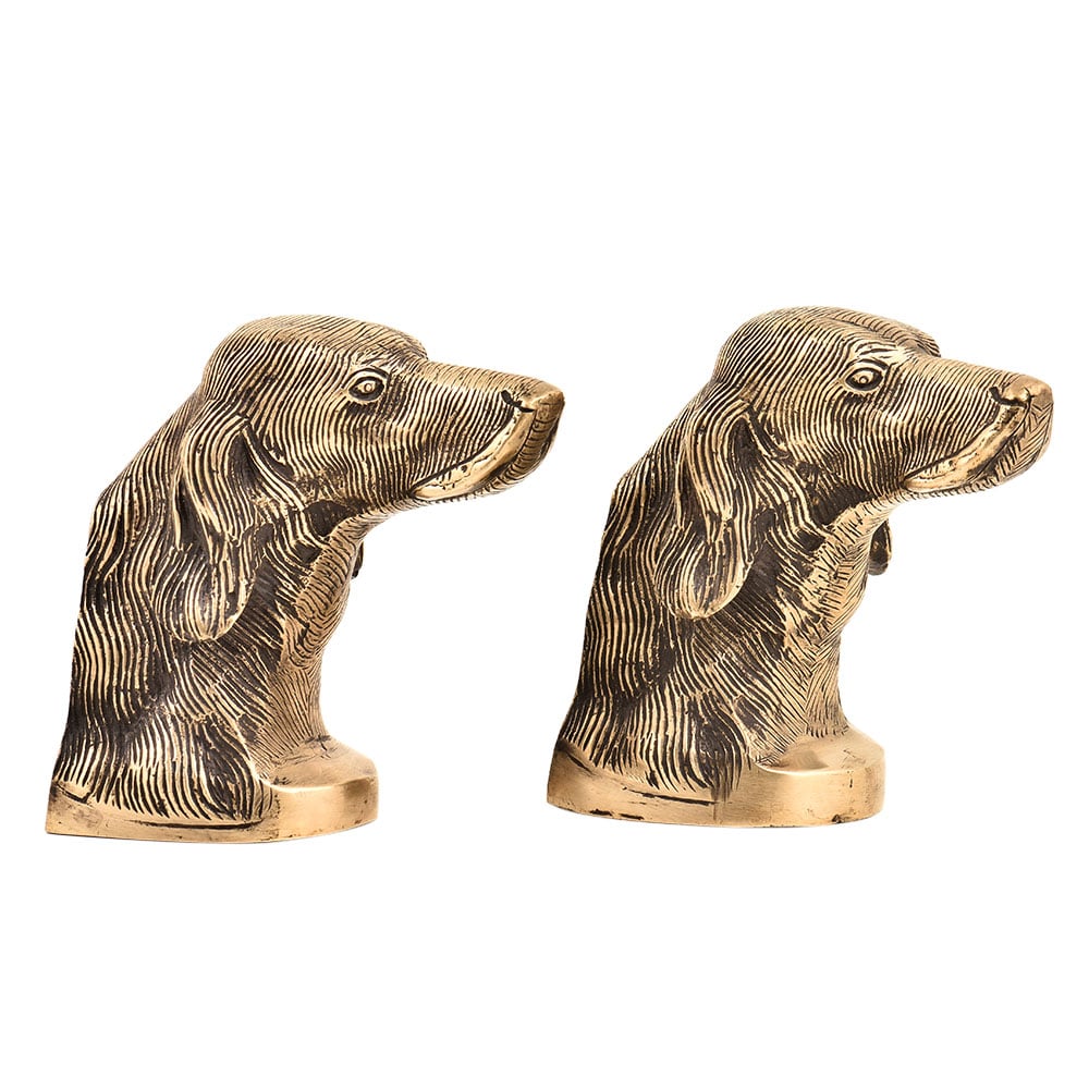 Hand Crafted Brass Golden Retriever Dog Bust Heavy Bookends