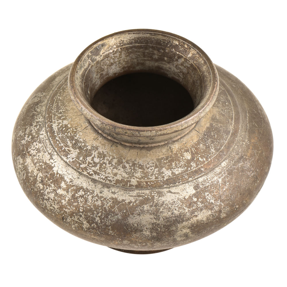 • Hand Crafted Brass Pot With A Large Belly And Small Mouth