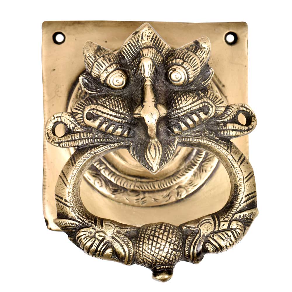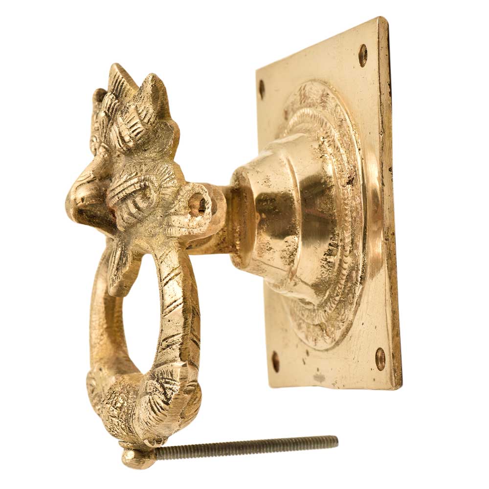 High quality brass door knocker has a lovely engraved dragon face along with a heavy knocker attached to the face. It adds a decorative element to your main door and is also an excellent gifting option.