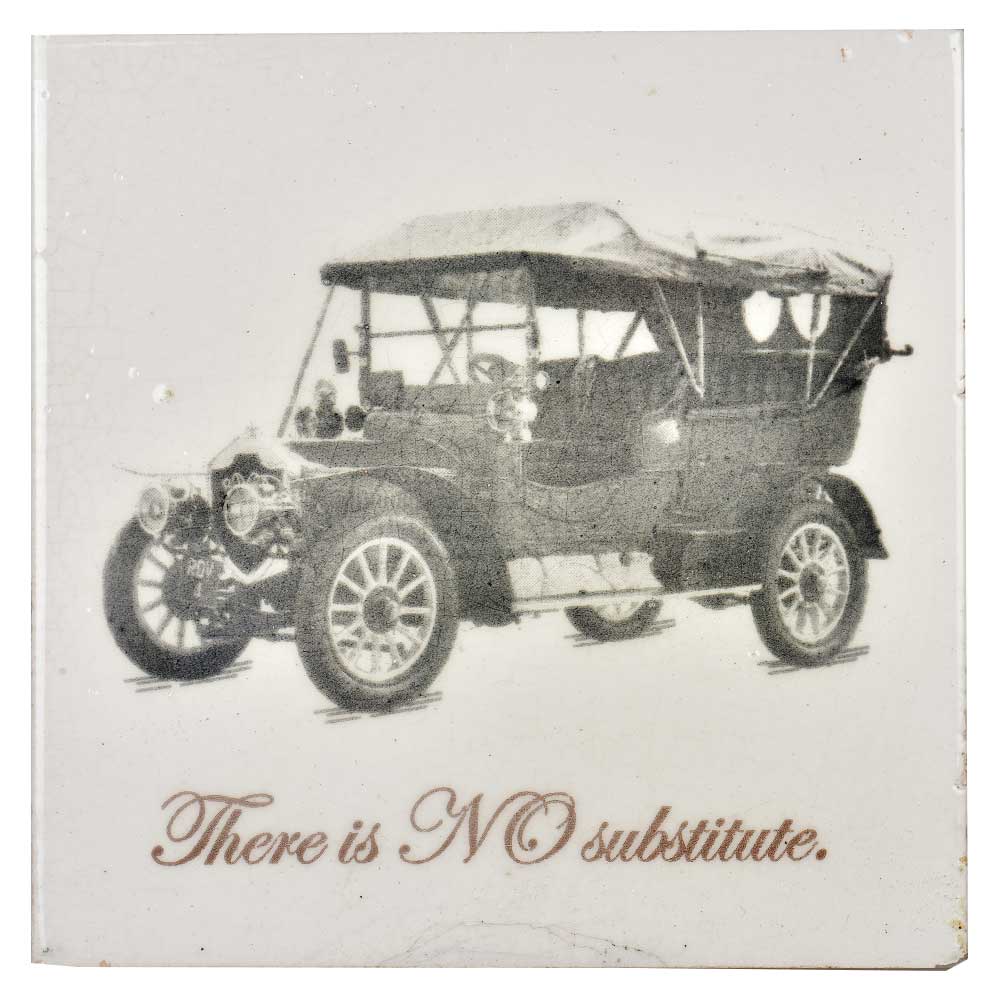 Made of white ceramic Display your favourite photos, images of an old vintage car along with a tagline that says " There is no substitute" on this vibrant ceramic tile. You can use your custom tile as a trivet or to upgrade your home décor. Great for holiday, wedding, and office gifts.