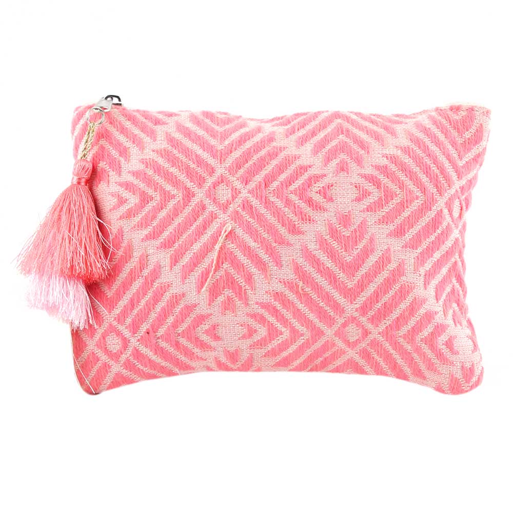 Hand Embroidered Pink CottonClutch Bag With Side Tassle