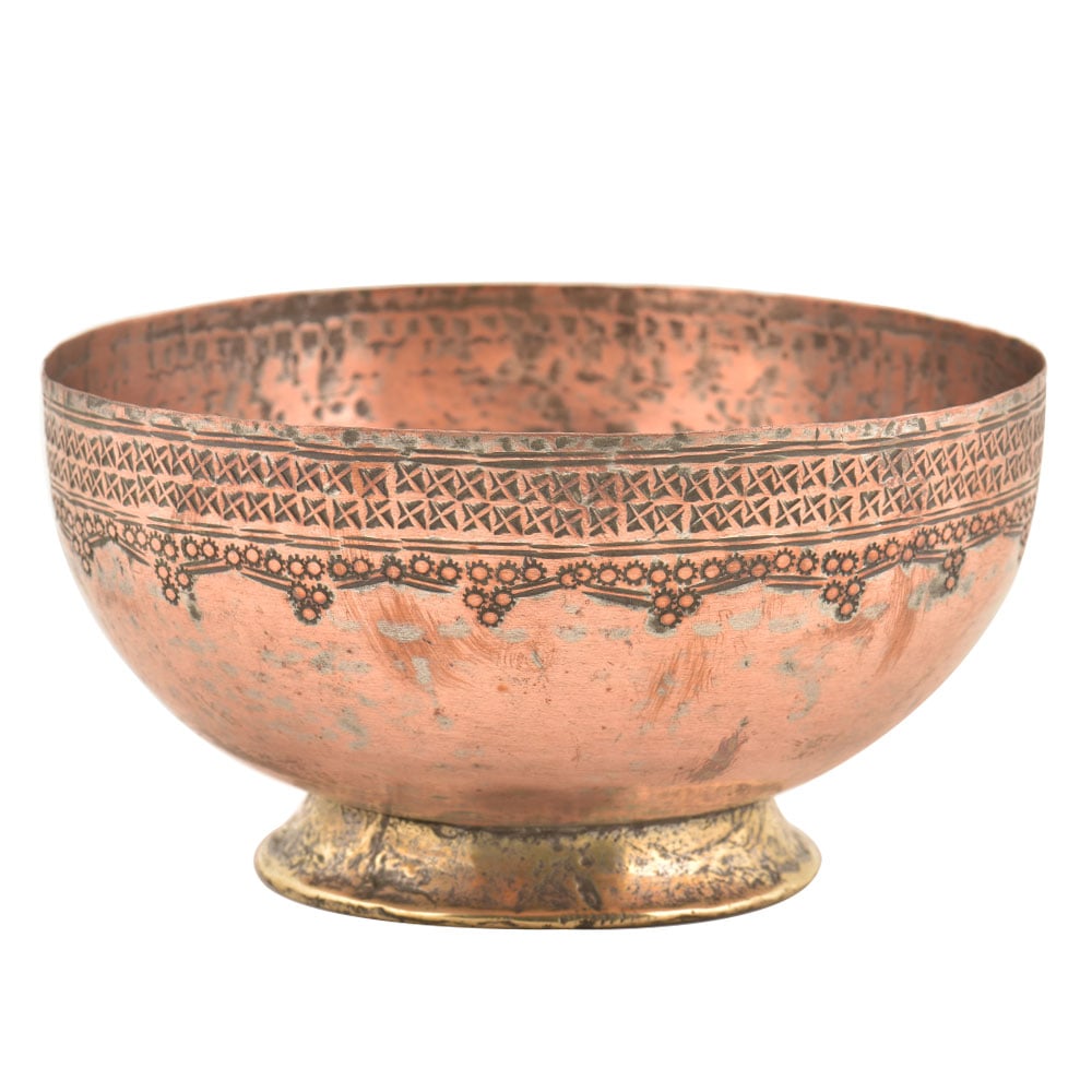 Hand Engraved Cross Pattern on the Rim Of the Copper Bowl