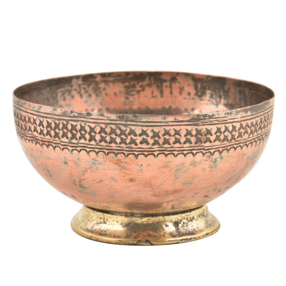Hand Engraved Cross Pattern on the Rim Of the Copper Bowl