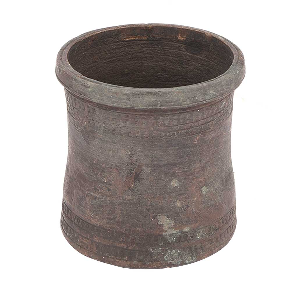 Brass Hand Carved Hindu Temple Worship Panch Patra Pot Holy Water For Collection. It has Foots for Support Ad Keep It Away From the Ground.