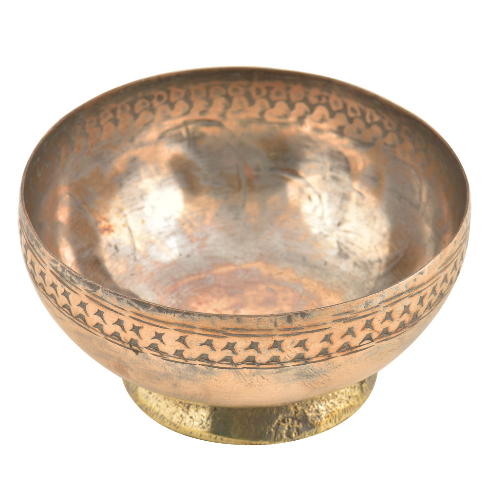 Hand Engraved Stary Pattern On Rim Copper Bowl