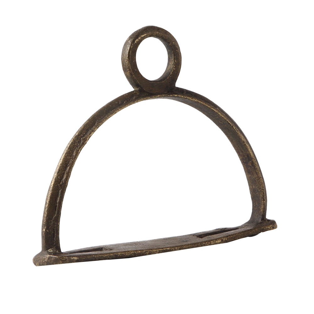 Hand Forged brass saddle foot rest from the civil war. Saddle that looks like it was forged by a blacksmith in the South. Has rust on its surfaces as a result of weather exposure. Surface pitting on the brass is present. possesses a small one-sided tilt. But it's sturdy and in respectable condition for its age. Most likely an early pick-up.   An excellent Civil War treasure for any collection.