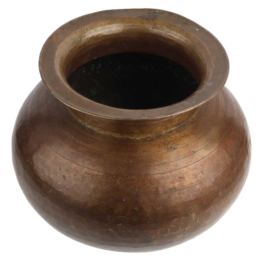 • Hand Hammered Round Brass Pot With A Small Mouth