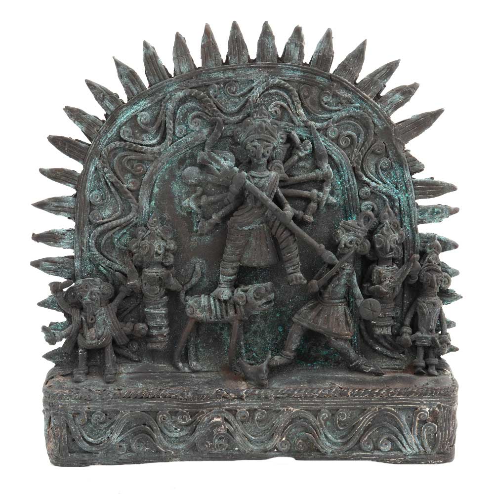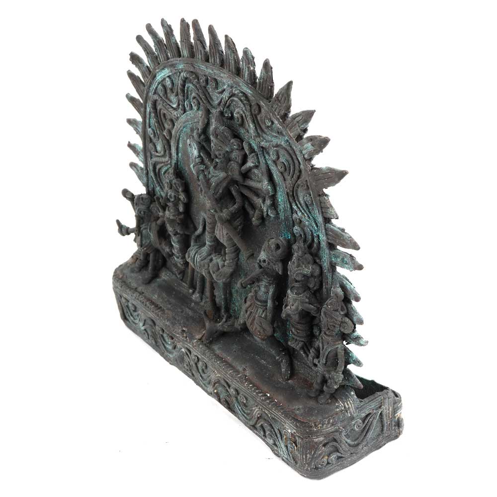 Traditional Goddess Durga statue slaying mahishasur perfectly casted in fine brass metal by master craftsmen of India. perfect wall hanging, Diwali gift, wedding gift. Gift it to your friends and relatives during special and important functions and occasions.