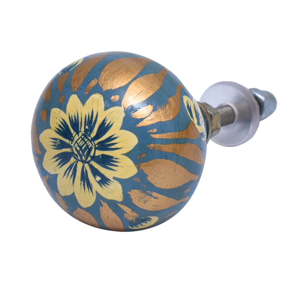 Designed with golden floral petals, these knobs reflect the timeless beauty of Kashmiri art. The delicate floral motifs, combined with the rich golden finish, create an elegant and vibrant statement that is sure to impress. Each knob is carefully handcrafted by skilled artisans, ensuring a unique and detailed piece of art for your furniture.
