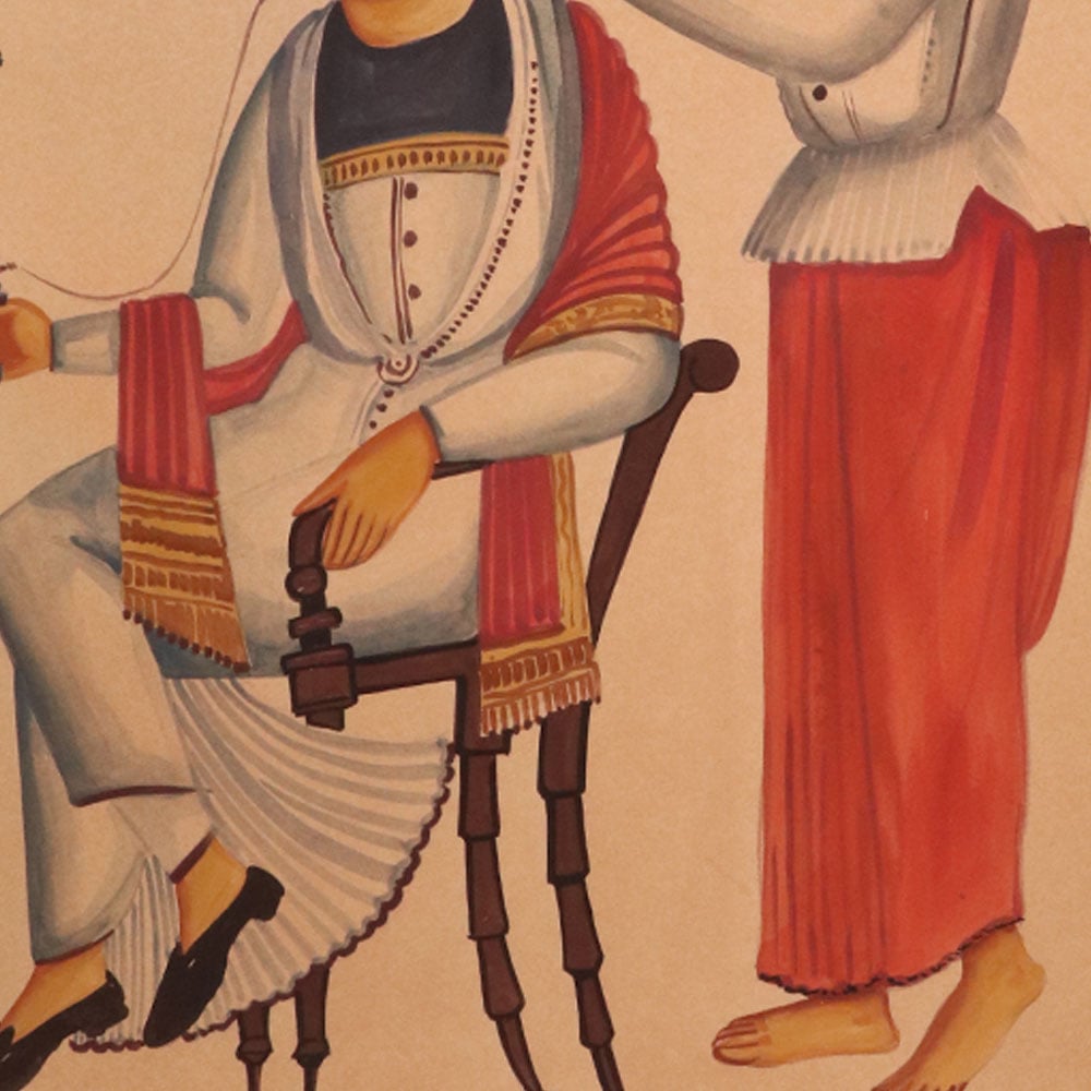 Unlock the allure of yesteryear with this stunning vintage calendar art paper painting. Depicting a regal king seated on his throne as a servant attends to his ear, this piece offers a glimpse into a bygone era, inviting you to step back in time and immerse yourself in its timeless elegance. This captivating artwork is more than just a decorative piece - it's a portal to the past that will captivate and inspire. Imagine the stories it could tell, the secrets it might hold. Display it in your living room, office, or study, and let it transport you to a world of opulence and intrigue. Whether you're a collector of vintage art, a lover of historical imagery, or simply someone who appreciates the beauty of the past, this vintage calendar art painting is a must-have addition to your home or workspace. Elevate your space with this timeless masterpiece and let it become a conversation starter that showcases your impeccable taste.