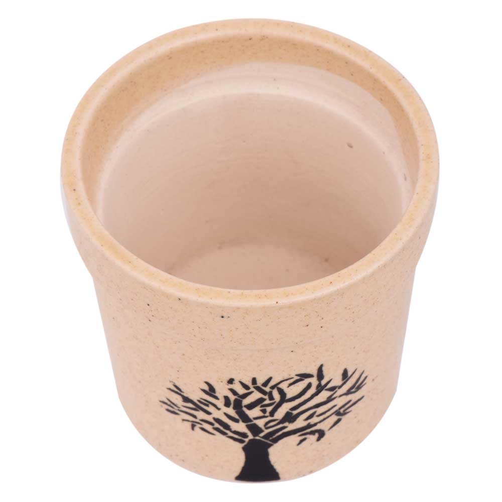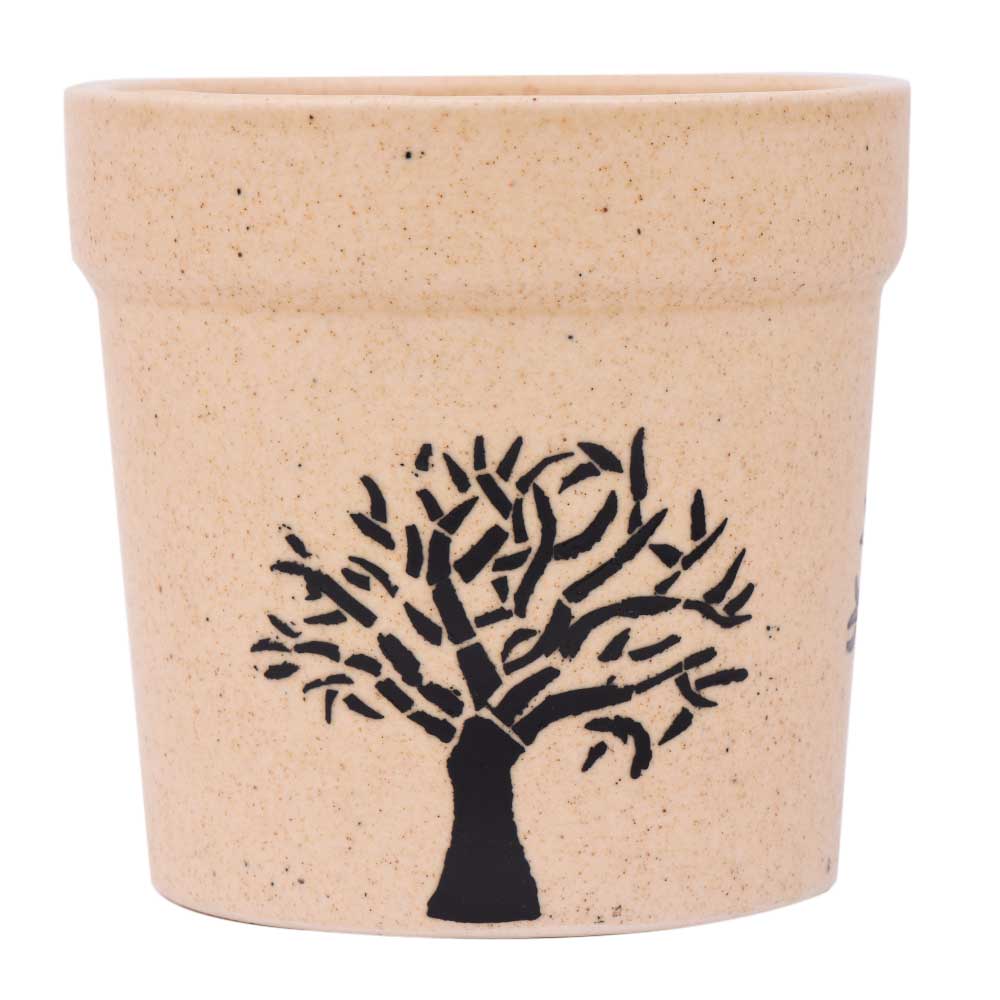 Hand painted Black Tree On Beige Ceramic Pot is the cute companion for ferns, herbs, kind of succulents, indoor and outside plants each real and artificial. Place this eco-friendly planter pot anywhere in your home balcony, table top, window sills, vegetable garden, and workplace table and can also be used as an interior decoration item.