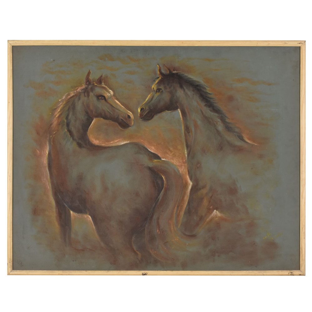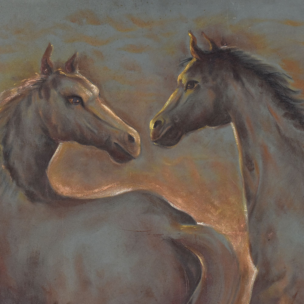 - Hand-painted cloth artwork of two horses