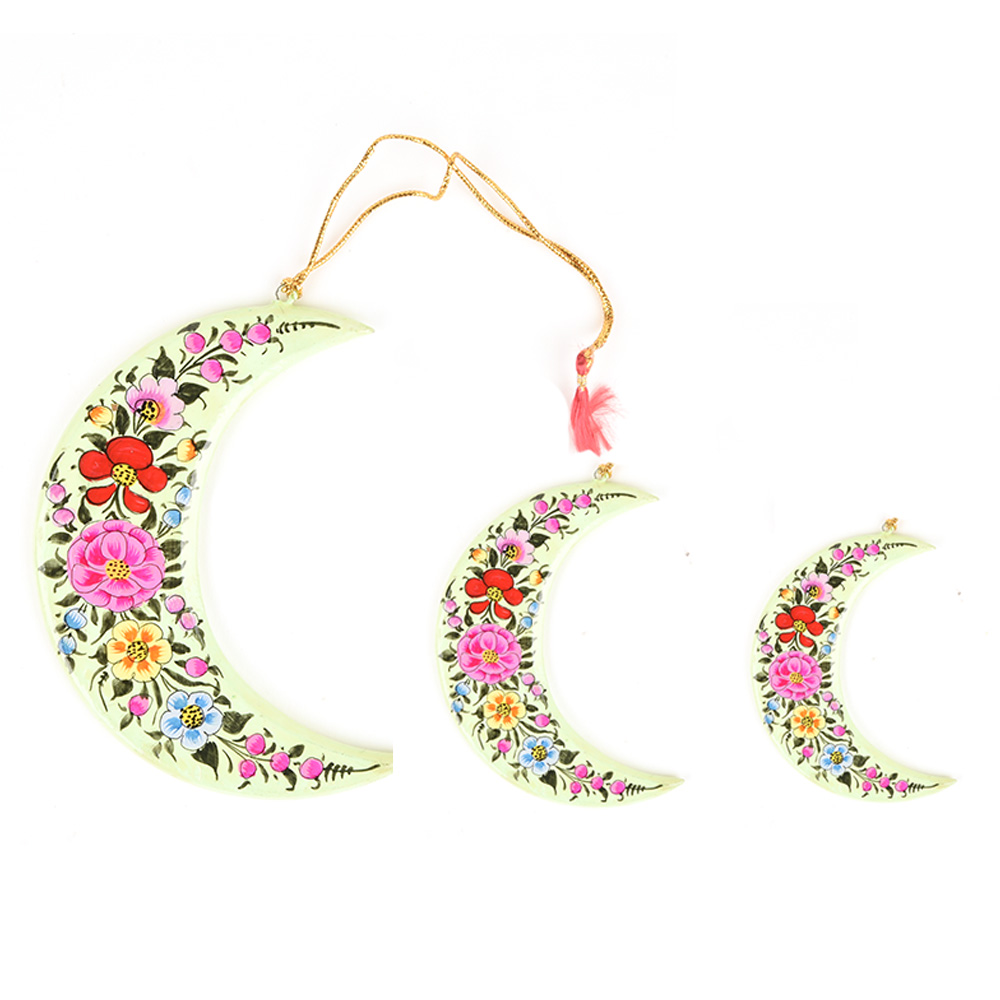 Hand Painted Floral Half Moon Christmas Tree Decoration In Set Of 3