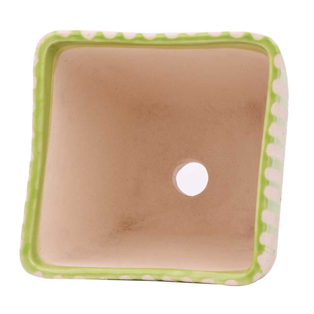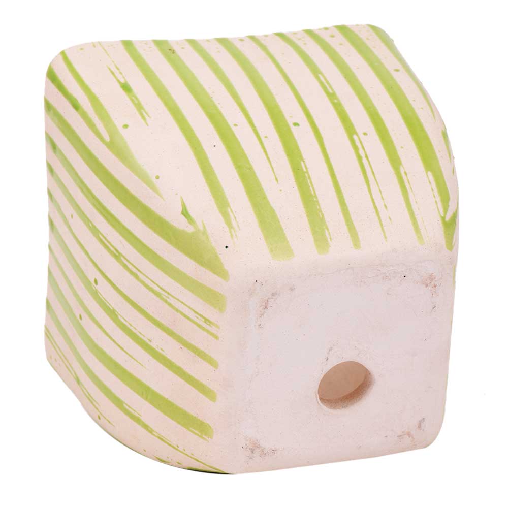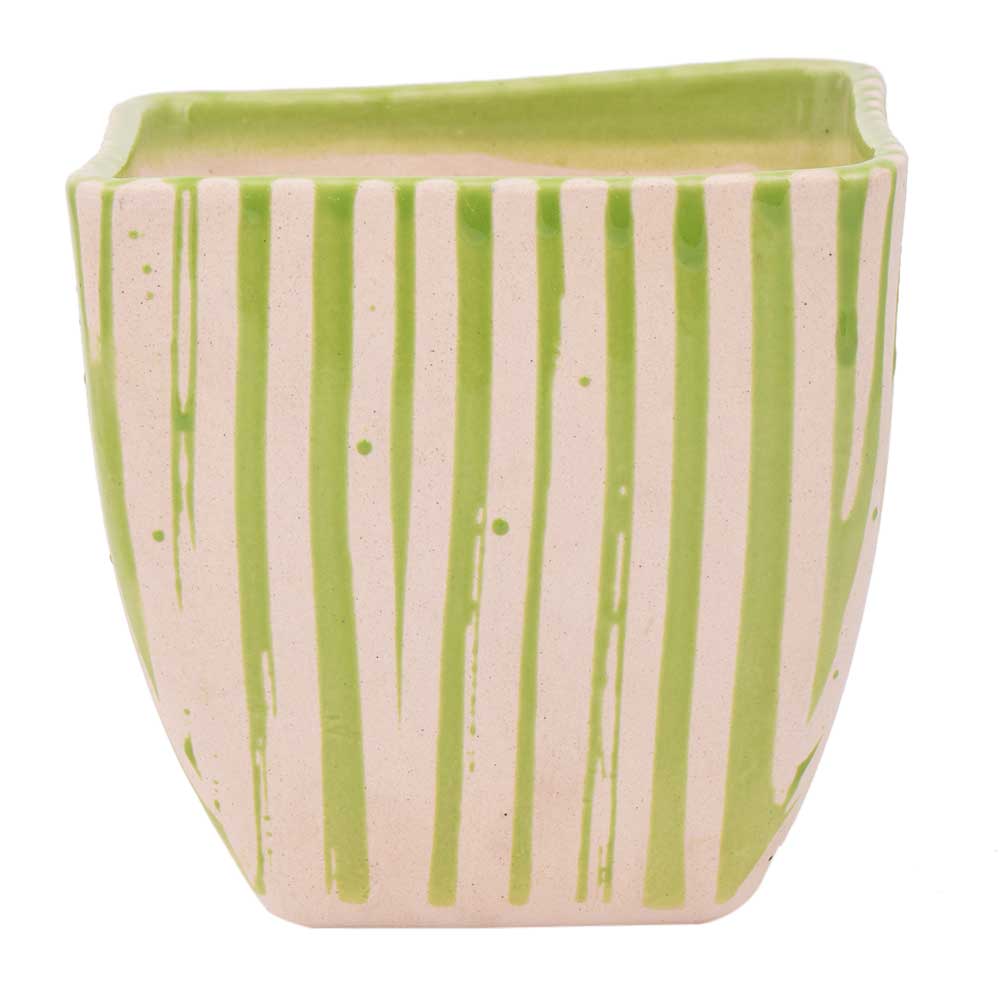 • Hand painted Green Stripe Design Pot For Interior Design