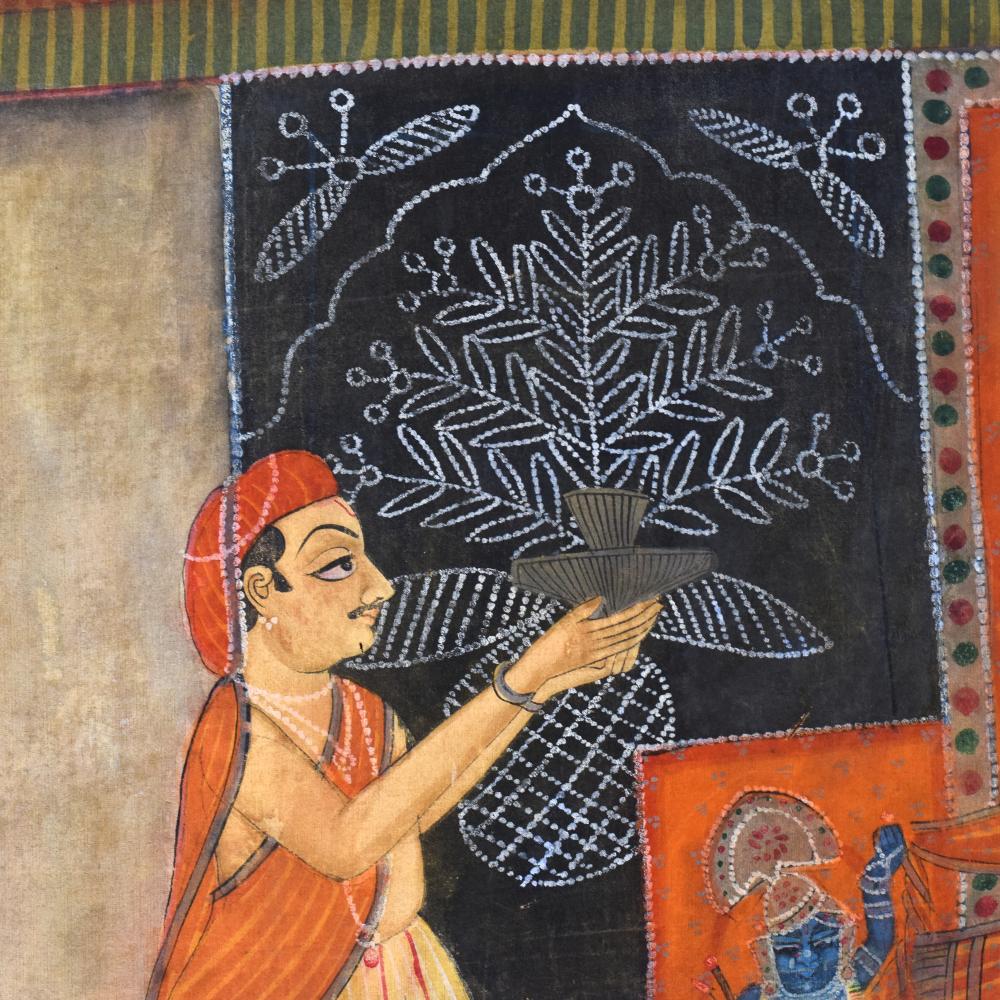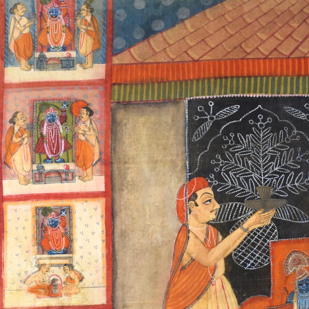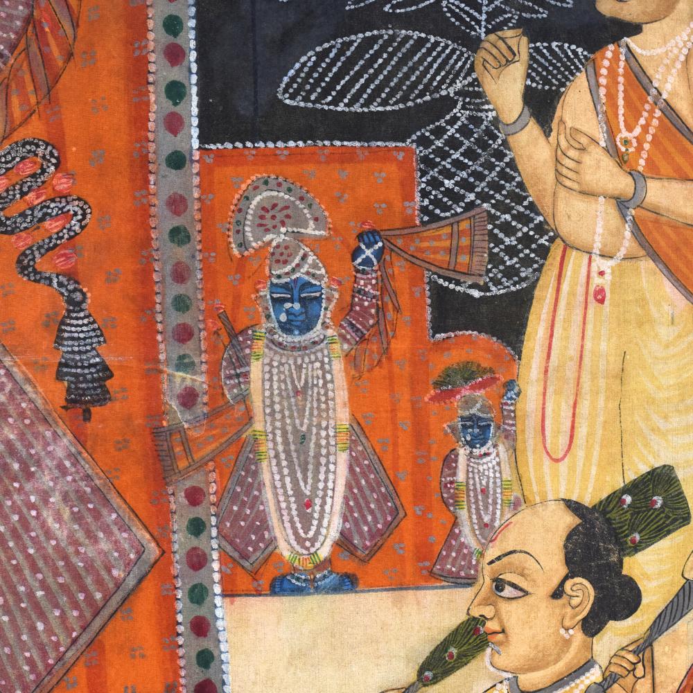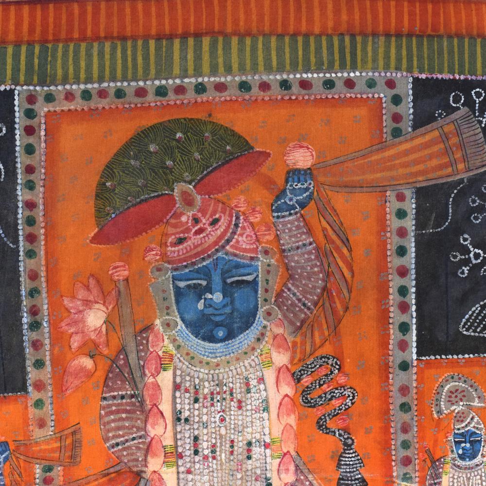 - Depiction of Shrinathji in his iconic pose, central to Pushtimarg worship.