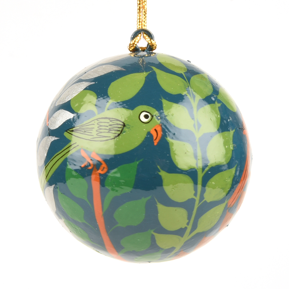 Hand Painted Parrot And Leaves On Paper Mache Ornaments, 'Christmas Blossoms