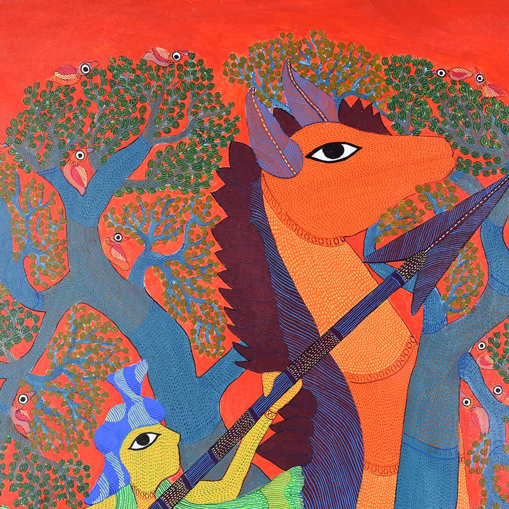 - Durgabai’s detailed approach blends traditional Gond motifs with modern artistic techniques.