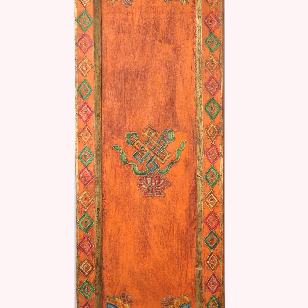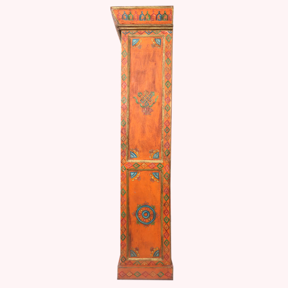 This handmade wooden almirah is a stunning representation of traditional Himalayan craftsmanship, richly decorated with multiple hand-painted Buddha motifs framed by floral and geometric designs. The vibrant mix of orange, blue, red, and green hues enhances its antique appeal, while the intricate artwork highlights spiritual symbolism and cultural heritage. Tall and spacious, this cabinet is ideal for storing clothes, books, or sacred objects while also serving as a striking decorative centerpiece. Each panel is carefully painted by skilled artisans, making every piece unique and collectible. Perfect for meditation rooms, heritage-inspired interiors, or as a spiritual décor element, this wooden painted almirah blends functionality with timeless artistry.