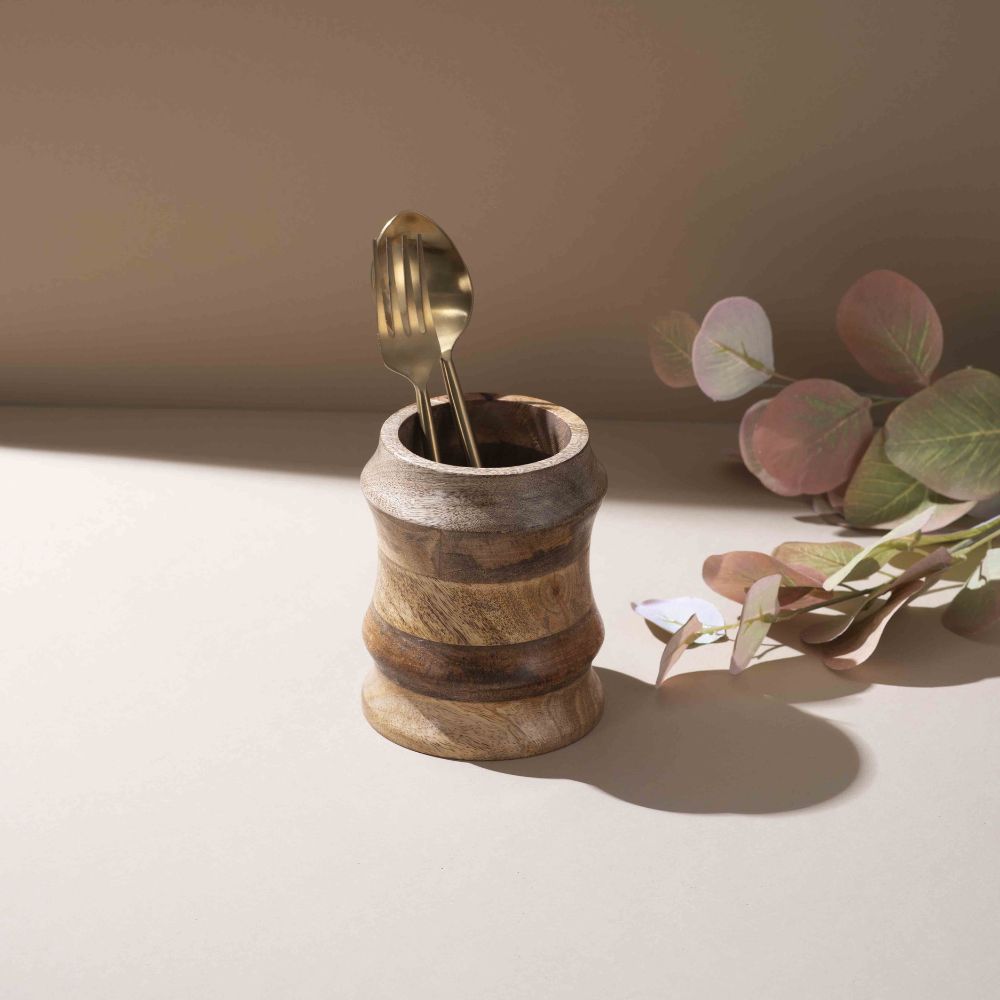 • Hand-Turned Wooden Utensil Stand
