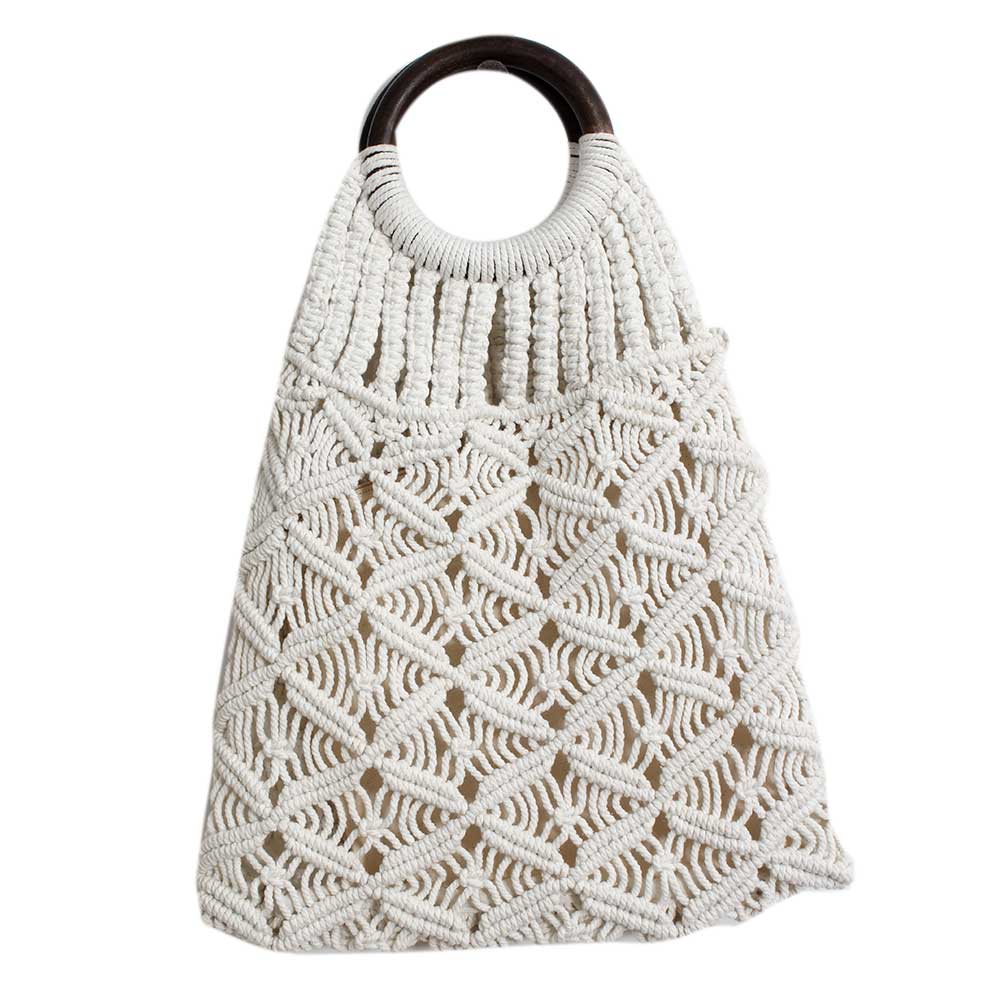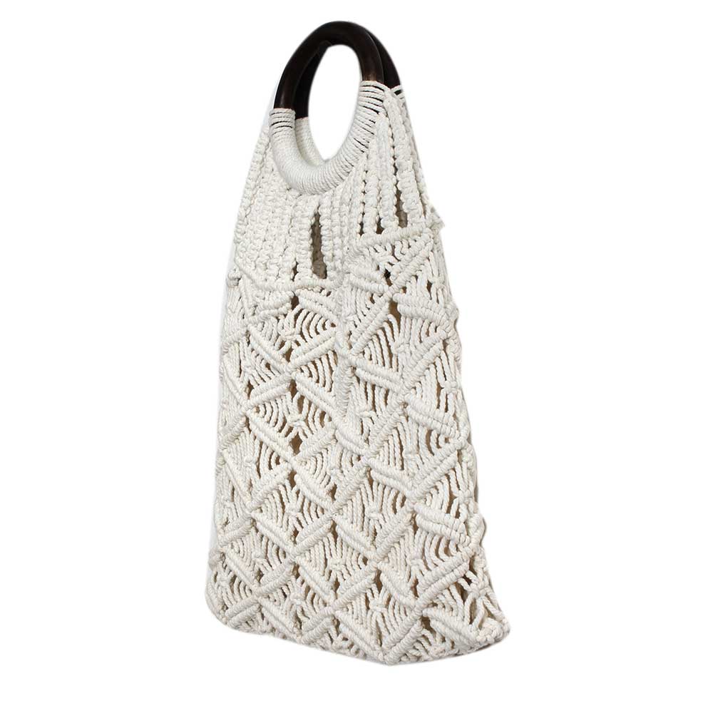 Hand Woven Cream Jute Tote Bag with Wooden Handle