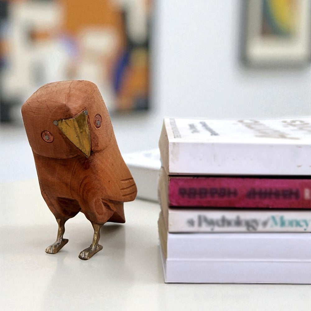 They are made from natural mango wood with brass accents on the beak, feet and eyes.