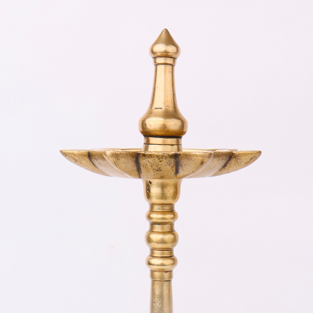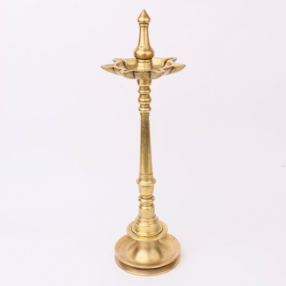 Crafted with meticulous South Indian artistry, this vintage brass oil lamp will transport you to a bygone era of elegance and ambiance. Featuring a stunning brass construction, this captivating centerpiece can be lit with up to 7 jyots simultaneously, radiating a mesmerizing glow powered by the timeless combination of mustard oil or ghee and cotton wicks. Elevate the ambiance of any room with the mesmerizing radiance of this vintage brass oil lamp. Whether positioned as a striking focal point or thoughtfully placed to create a cozy, intimate atmosphere, this captivating piece will infuse your space with the timeless elegance of South Indian artistry. Experience the joy of a bygone era, where the simple pleasure of firelight danced across the room, casting a warm, inviting glow that soothes the soul. Invest in a piece that will become a cherished heirloom, passed down through generations to come.