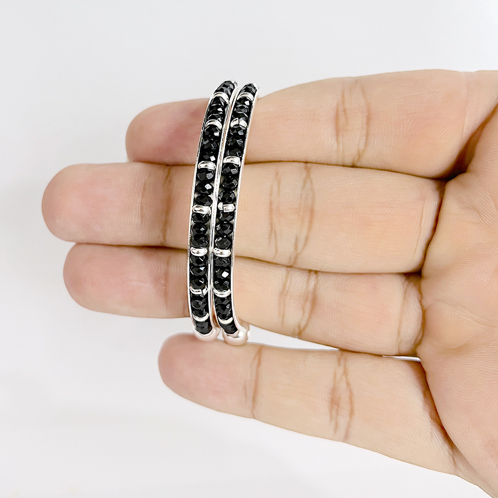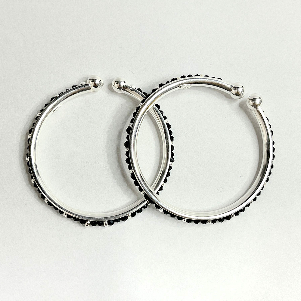 • Handcrafted 92.5 Sterling Silver Black Beaded Kada Pair