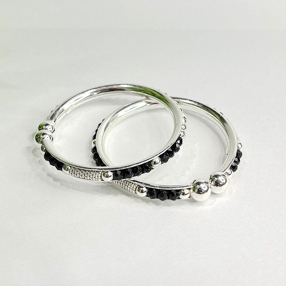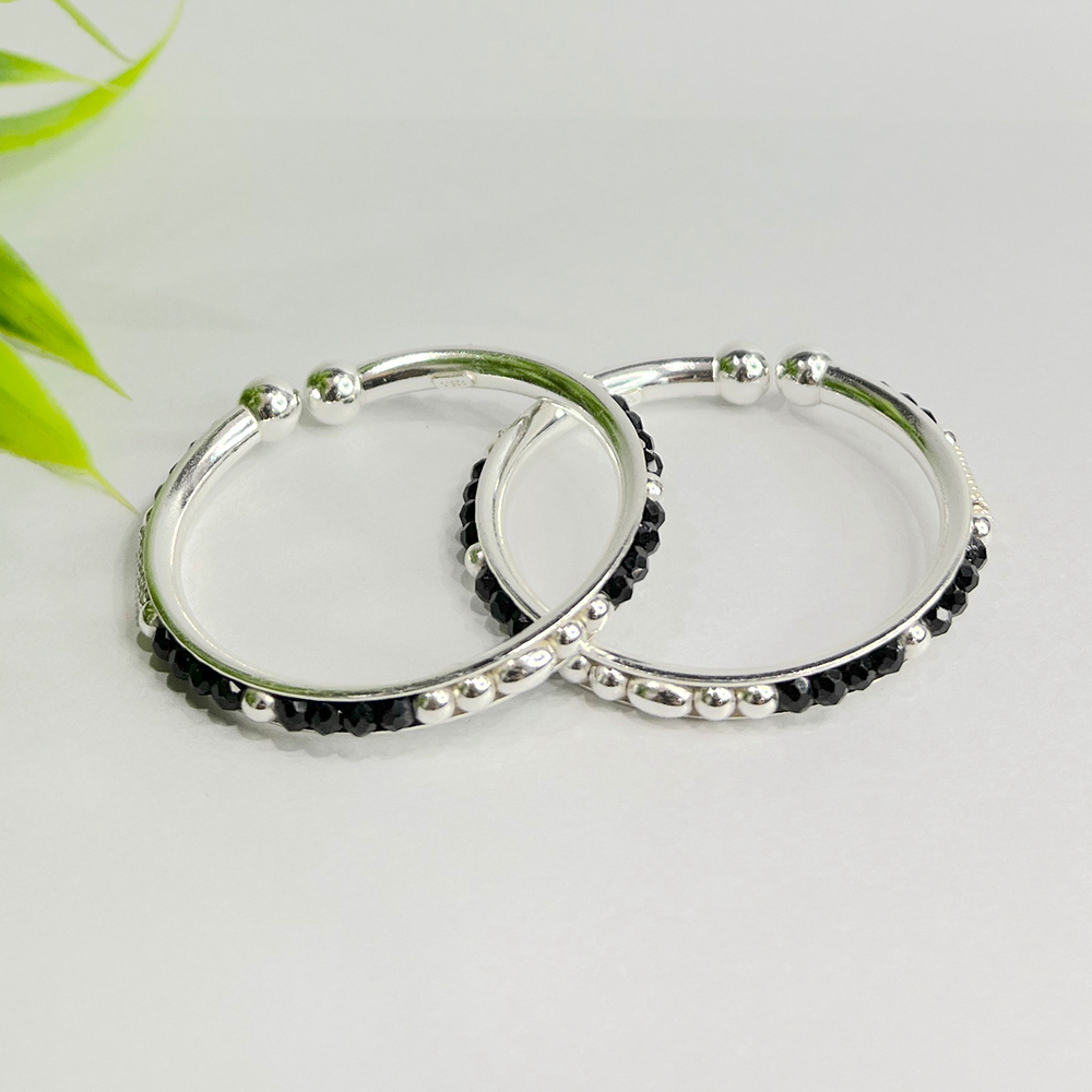 • Handcrafted 92.5 Sterling Silver Nazariya Bead Kada Pair
