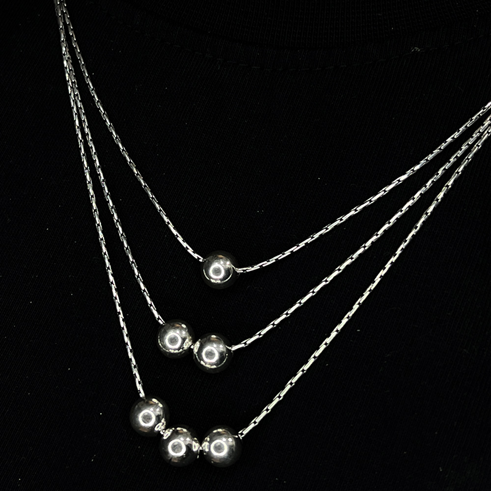 • Handcrafted 92.5 Sterling Silver Triple Layer Silver Ball Chain