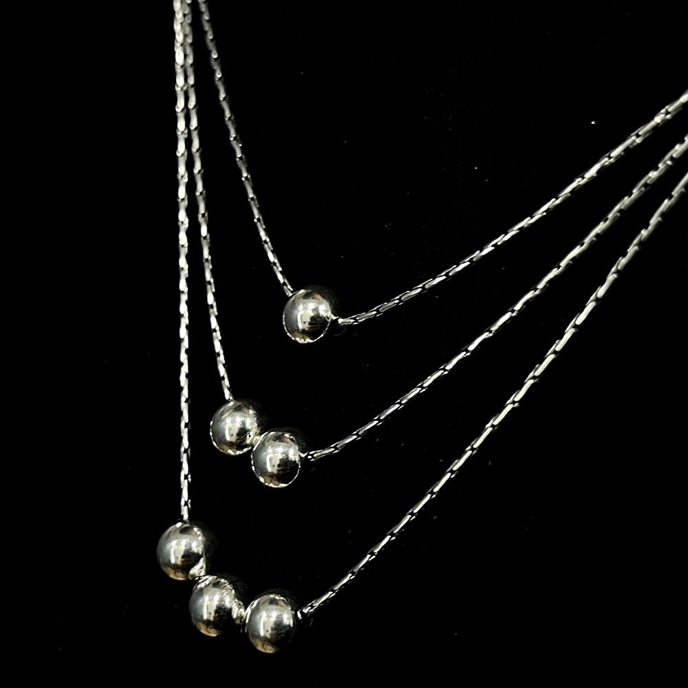 Handcrafted 92.5 Sterling Silver Triple Layer Silver Ball Chain
