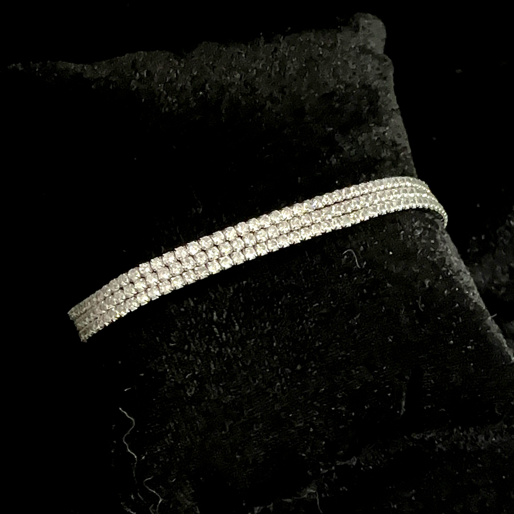 Handcrafted 92.5 Sterling Silver Tripple Layer Tennis Bracelet