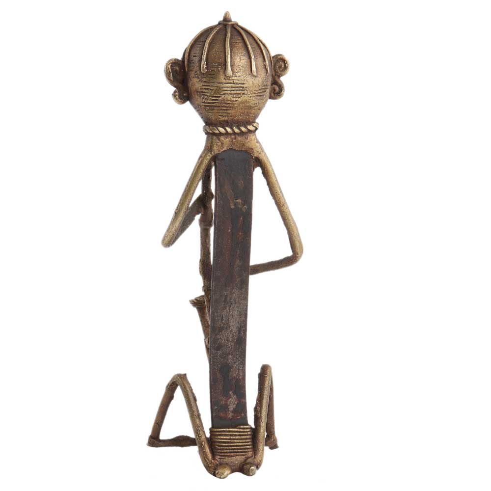 This exclusive brass figurine of a tribal musician is an example of the fine craftsmanship of the dhokra tribe. It is an ideal item to gift or use for home or office décor.
