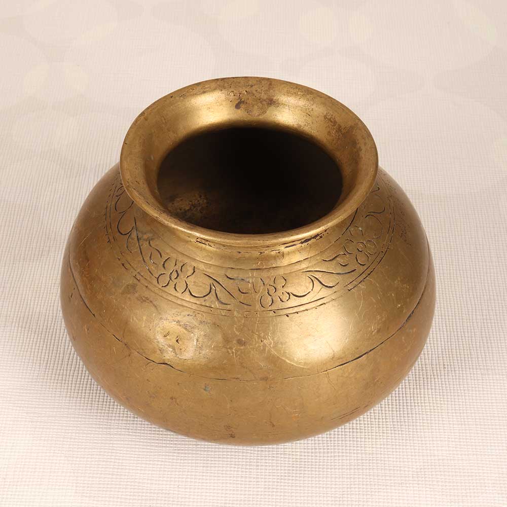 A sacred heirloom for your home altar, this vintage brass holy water pot evokes old world charm. With intricate engraving decorating the sides, this pot makes a graceful vessel for holy water. Bring a touch of spiritual tradition to your daily prayers and rituals with this brass holy water pot. Designed to hold a small quantity of holy water for blessing yourself, it hearkens back to vintage European church traditions. The engraved sides are embellished with a delicate floral design that makes this pot a decorative accent even when not in use. For those who want to connect with cherished faith practices of the past, this brass holy water pot makes a meaningful addition to your sacred space. Visually stunning and purposeful, it will remind you of the holy with each use.