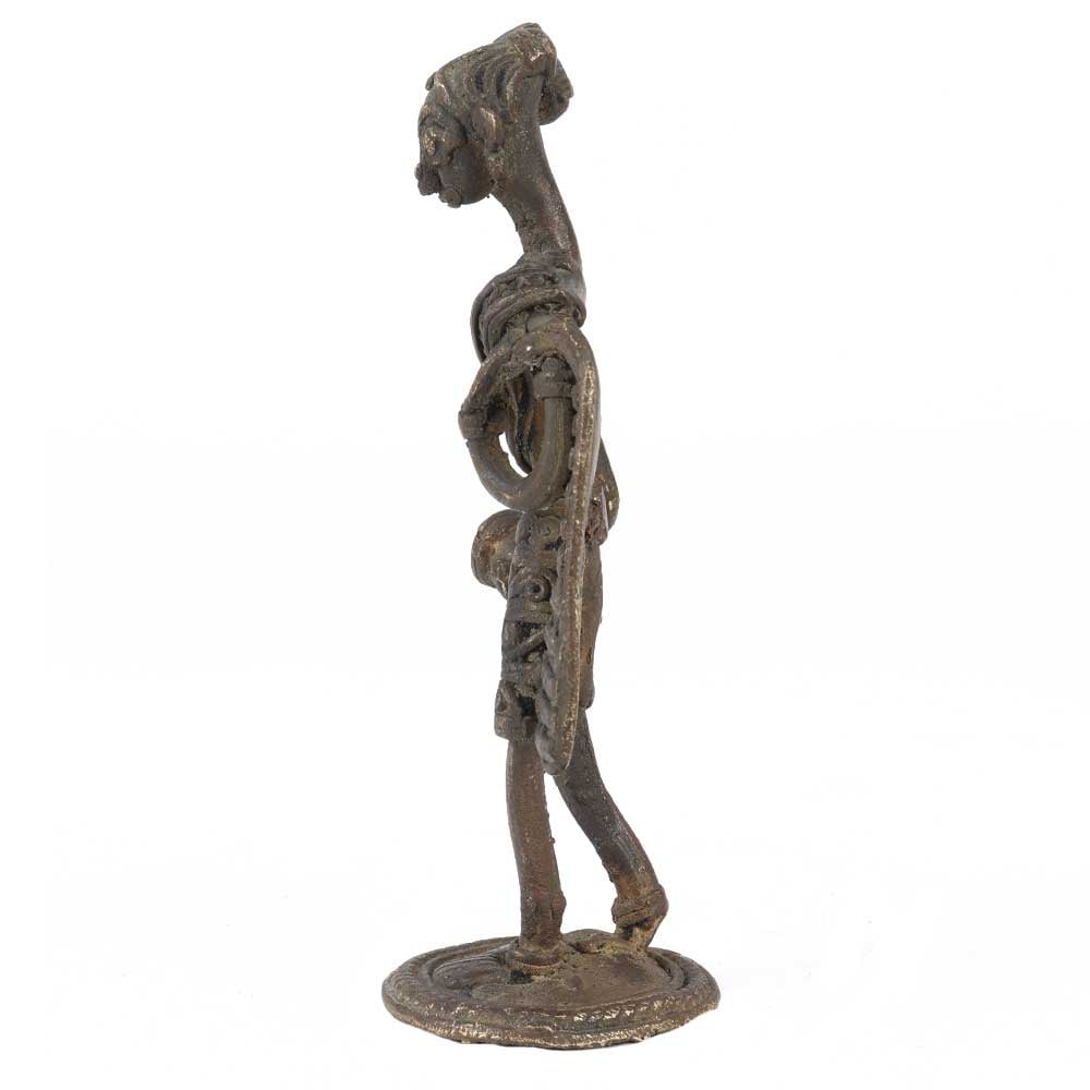 • Handcrafted Black Brass Dhokra Tribal Women Statue