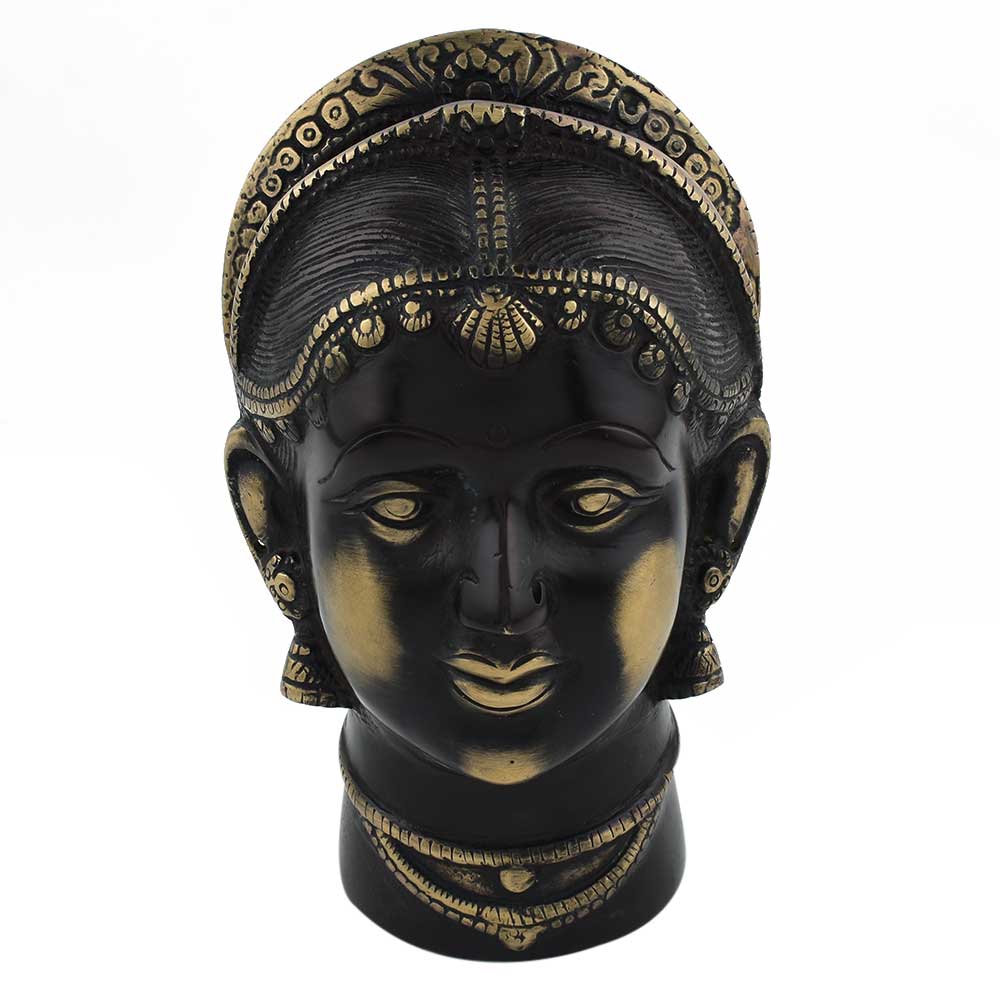 • Handcrafted Black Brass Gangaur Gauri Face Statue Parvati