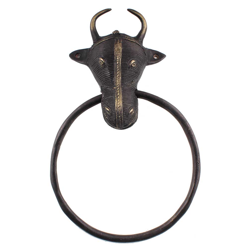 Handcrafted Black Brass Tribal Bull Ox Head Brass Towel Holder