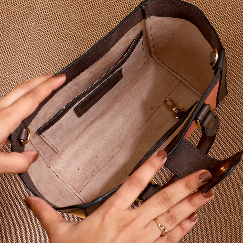 Crafted in gorgeous Blush, Peach and Black Currant leather, this handbag has a magnetic loop closure, combining ease and elegance. Though petite, the Little Serena offers ample space for your mobile phone, wallet, and a touch of make-up, making it ideal for both day-to-day activities and special occasions.
