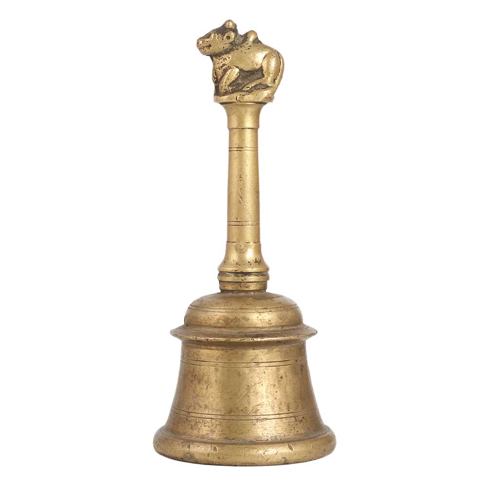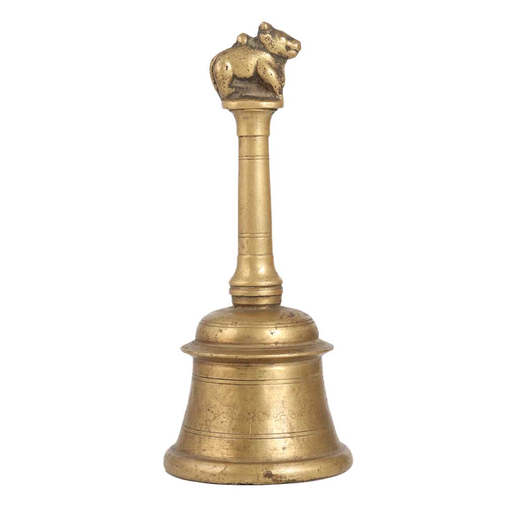 A brass bell with Lord Nandi engraved on the top. It has a sturdy appearance and is an eye-catcher for your guests and visitors. This brass bell is used during rituals, havans and auspicious occasions to produce a soothing sound that relaxes the mind of the worshipper from running thoughts and helps him focus on the deity. Use this bell during morning and evening prayers or keertan. Buy this brass bell online to get hassle free delivery directly to your doorstep. It is handmade by skilled Indian craftsmen using traditional methods. Lord Nandi carved on the top is the bull vahana of Hindu God Lord Shiva. Promising gift for any special and festive occasion for your loved ones.