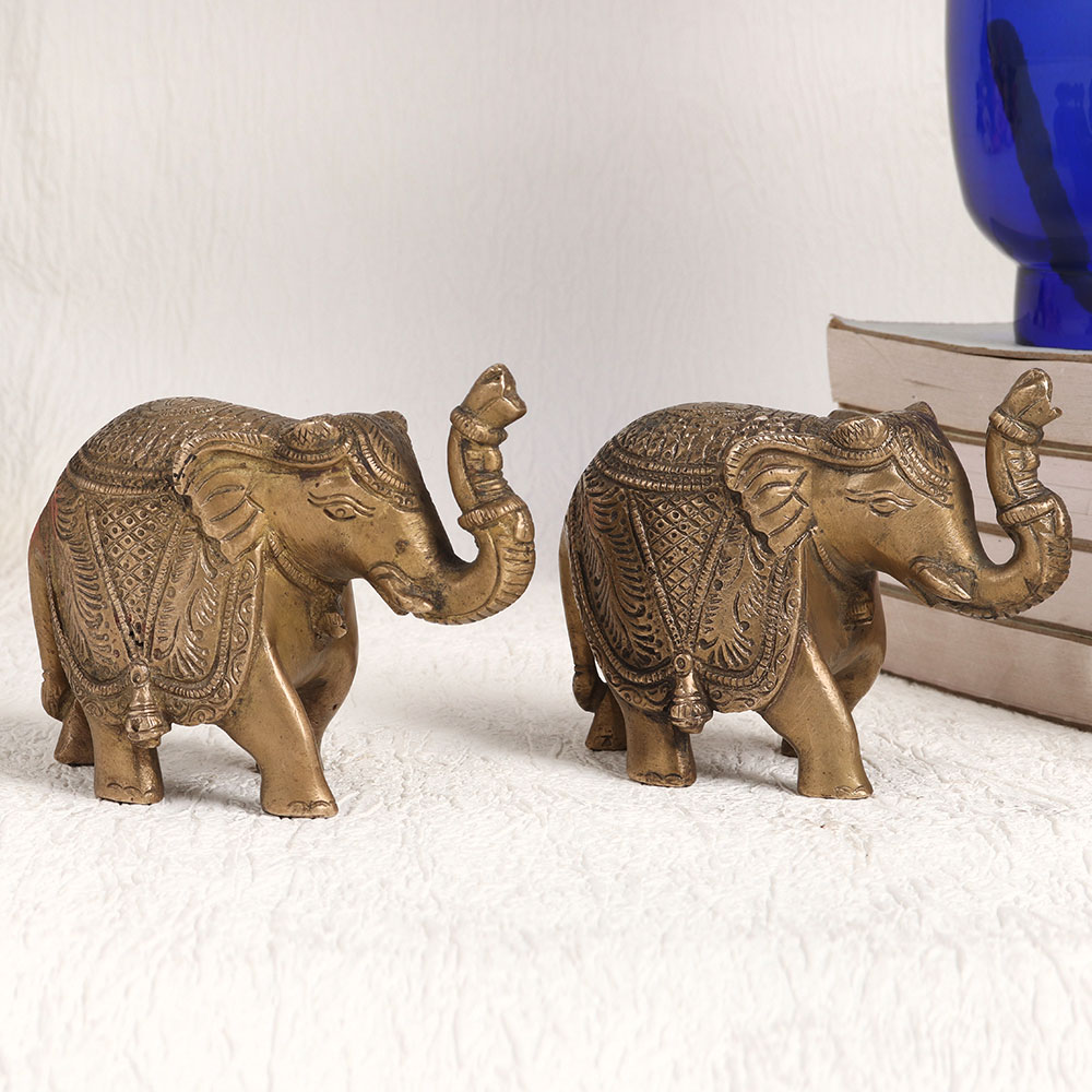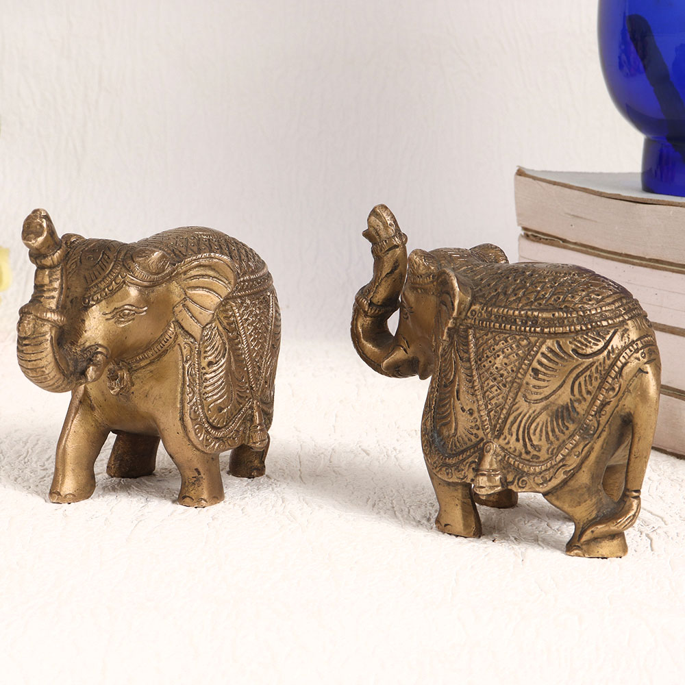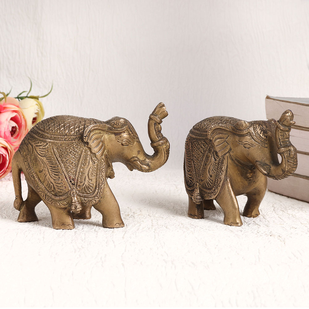Enhance your decor with our exquisite Brass Pair of Elephants meticulously handcrafted by highly skilled artisans in the timeless English Art tradition. These magnificent pieces showcase a rich antique brown finish that exudes sophistication and charm. Crafted with precision and care, these elephants are made from high-quality brass, ensuring their durability and lasting beauty. Whether you're adorning your home, office, restaurant, hotel, cafe, or shop, these majestic elephants make a striking decorative statement. Their intricate detailing and vintage appeal add a touch of elegance to any space. Not only are these elephants a splendid addition to your interior decor, but they also serve as prized collectibles. Perfect for exhibitions, they will captivate art enthusiasts and collectors alike. Furthermore, these elephants make thoughtful and meaningful gifts for your loved ones on special, festive, or auspicious occasions, symbolizing strength, wisdom, and good fortune.